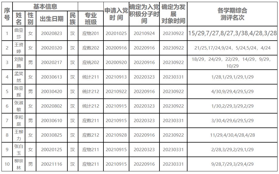根据本人申请,党组织培养,经金财娱乐城 学生党支部委员会研究、支部大会讨论并无记名投票表决,拟吸收曲亚莎等10位同志为中共预备党员,现将其有关情况予以公示。