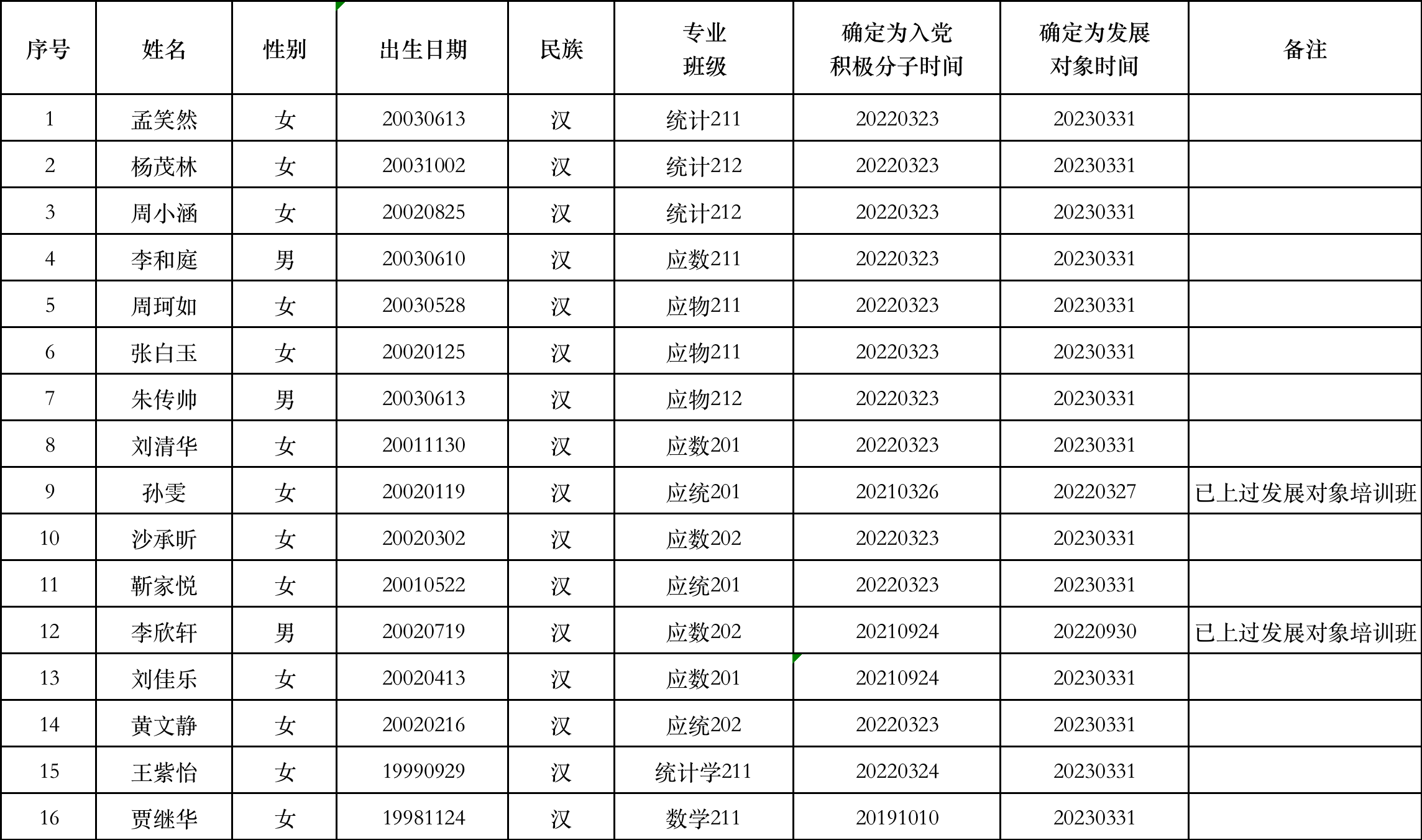 经金财娱乐城 学生党支部、研究生党支部研究讨论,金财娱乐城 党委审核,拟确定杨茂林等16名同志为党员发展对象,现公示如下,如发现公示对象有不符合党员条件方面的问题,可在公示期内实名反映。