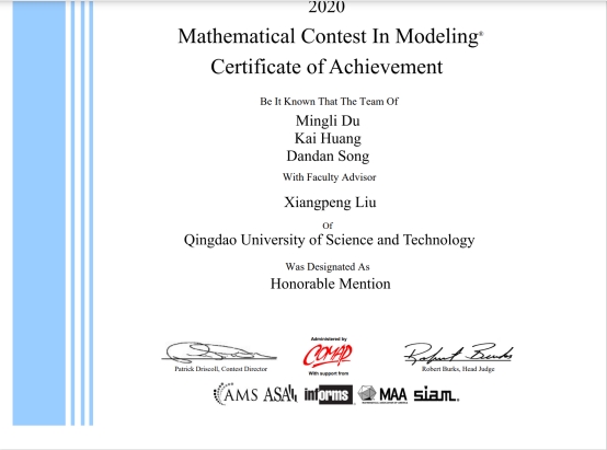 本专业至2017年开始招生以来,在夯实专业课程学习的基础上,积极参加学科竞赛等课外活动,获得了包括全国大学生数学建模竞赛国家一等奖3人、国家二等奖1人、省级奖项10人;全国研究生数学建模竞赛国家二等奖6人、国家三等奖3人;美国大学生数学建模竞赛8人;数学竞赛4人等奖项和荣誉,取得了丰硕的成果,为下一步学生就业和深造奠定了基础。