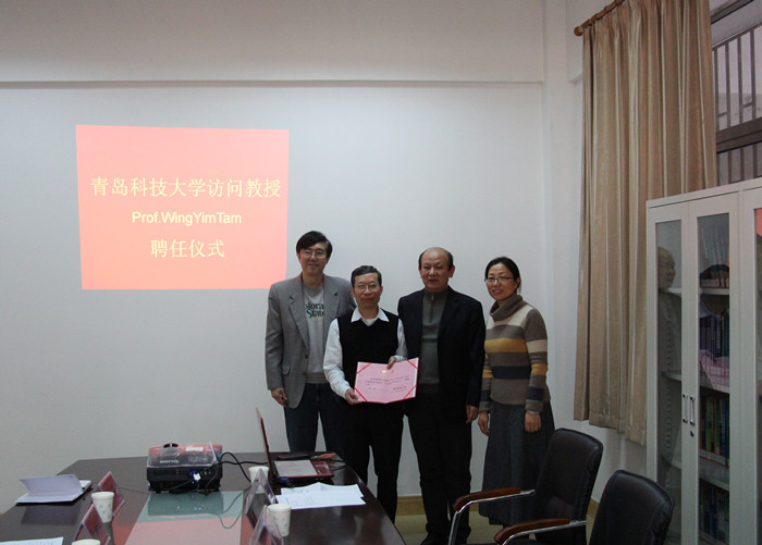 在学院会议室举行访问教授聘任仪式,校人事处处长宫玉军出席仪式并为香港科技大学谭永炎教授颁发青岛科技大学访问教授聘书。金财娱乐城