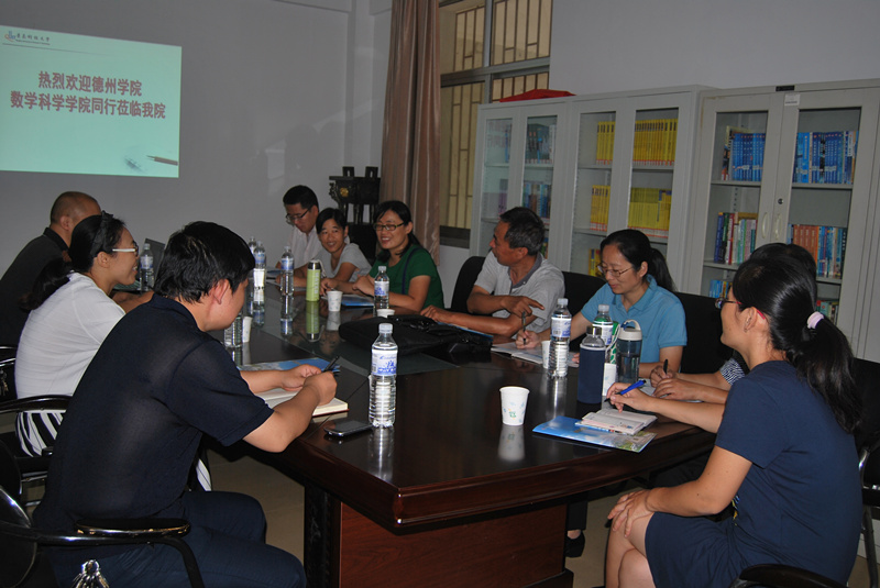 2016年9月14日上午,德州学院数学科学学院副院长张玉坤一行到金财娱乐城 进行考察交流,双方就学科建设和学科竞赛组织工作进行了座谈。副院长杨树国出席座谈会并讲话,数学建模教研室和应用数学教研室负责人参加座谈会。