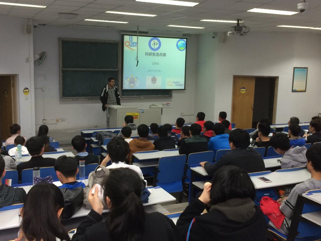 在提问环节中,针对同学们关于科研方法、课程学习、出国留学等问题,结合个人从事科研的经验及海外留学的经历,引导学生要指定自己的奋斗目标,要脚踏实地,投入精力和时间,不要局限于某一个学科或者领域,多交流,多沟通,开阔思维,才能有所收获。