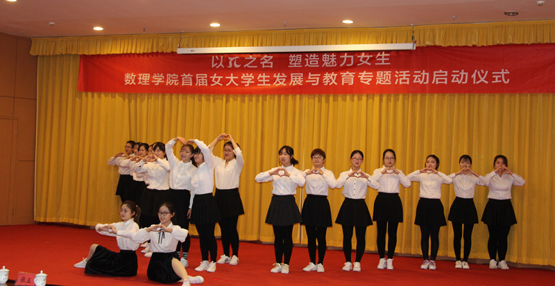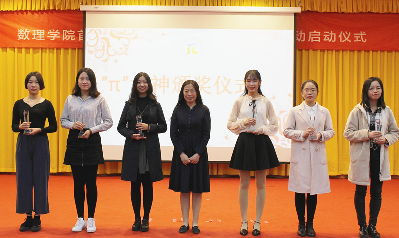 首届女大学生发展与教育专题活动实施方案》。女大学生代表时晗同学宣读倡议书。学院对遴选出的6位优秀女大学生进行了表彰,颁发“π”女神奖杯。女大学生表演了手语操《追光者》。