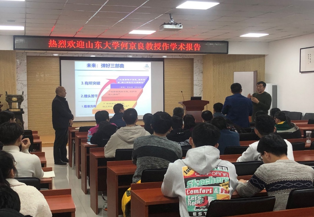 何教授的报告深入浅出,风趣幽默,使大家对当前新型光电材料、新型激光技术有了全新的认识。在报告尾声,何京良教授以自己的博学多识及严谨的治学态度,对现场师生的问题给予了耐心详细的解答,师生们受益匪浅。整个报告时长超过2个小时,仅提问环节就将近30分钟,何教授的精彩报告引起了到场师生的强烈共鸣。