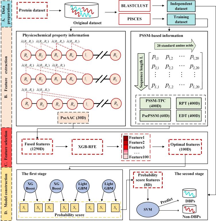 蛋白质组研究的开展是生命科学研究进入后基因组时代的里程碑,是继基因组研究之后的又一“大数据科学”。蛋白质组是生物功能的执行者,在生命活动中发挥重要的作用。DNA结合蛋白预测研究是蛋白质组学和生物信息学的研究热点。深入研究DNA结合蛋白对于研究疾病发病机理、抗癌药物的研发以及药物靶标设计具有指导作用,对于解释和阐明生命活动的本质起着至关重要的作用。DNA结合蛋白不仅在维持基因信息的表达方面扮演着重要的角色,还在药物开发研究领域被用作抗生素、类固醇和抗癌药物的关键成分。随着高通量测序技术的开发和应用,新的蛋白质序列不断涌现,通过实验方法识别DNA结合蛋白已远远不能满足研究的需要,发展快速高效的人工智能方法对DNA结合蛋白的研究具有重要意义。