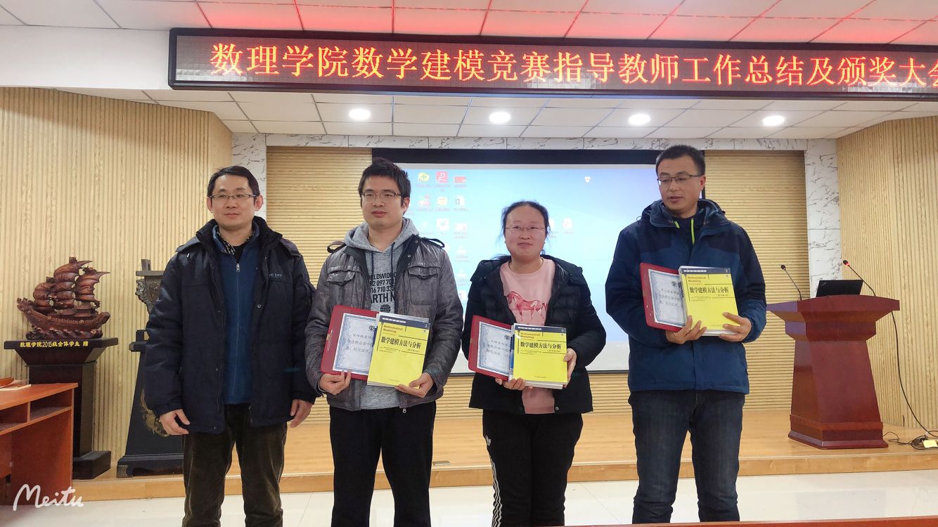 杨树国院长代表数理学院祝贺数学建模团队在2020年的在全国大学生数学建模竞赛、中国研究生数学建模竞赛和美国大学生数学建模竞赛中取得的优异成绩,感谢指导教师团队的辛勤付出,提出了2021年数学建模竞赛的新目标,鼓舞了全体建模指导教师的士气,鼓励大家在2021年奋力拼搏,力争取得更好的成绩!为学校争光!王明辉副院长代表学院为指导学生获得国赛和研赛国家一等奖的老师颁奖。数学系党支部书记徐菲老师宣布了数学建模党员先锋岗2020年被评为学校的优秀党员先锋岗,并勉励大家在党建方面继续做出贡献。