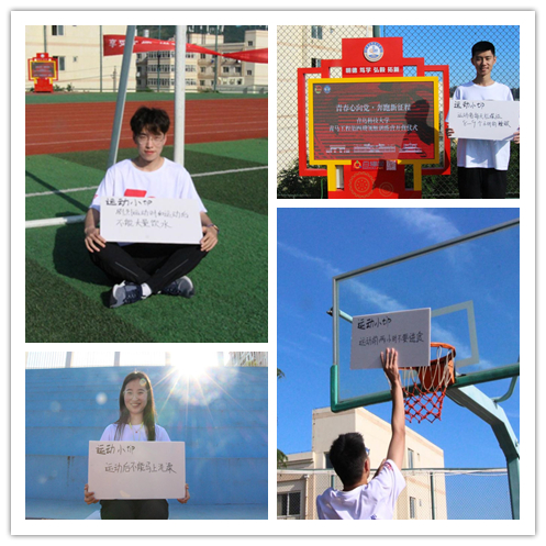 针对运动时容易出现的各种问题制作运动小贴士,把体育知识从课堂上带到运动场,在各个体育项目场地进行普及宣传,用多样化、创意化的方式提高传播体育健康知识的应用性、趣味性和有效性,号召同学们健康运动,科学运动,合理运动,安全运动。
