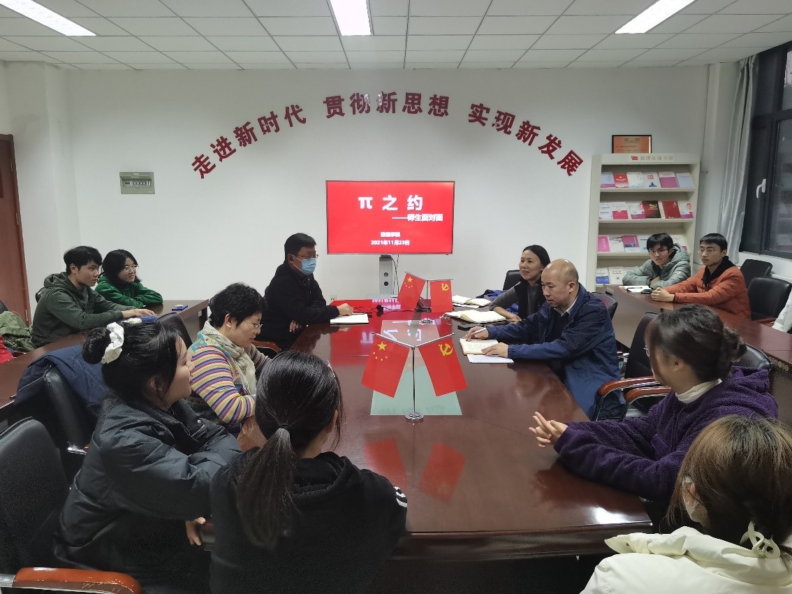 组织“读好书、悦分享”活动,感受读书之美、尽享读书之乐。以党史学习教育为契机,以班级为单位在学生中开展读书活动,交流读书心得、淬炼π品质、彰显π情怀。通过学院—班级—宿舍三位一体的π系文化建设,π系育人融入学生成长的每个环节。组织阶段性期中测试,帮助学生明确学习目标。辅导员约谈期中测试出现学业问题的学生,逐个引导,制定学习计划及一对一帮扶措施,引导学生抓紧学习机会,后半程发力,顺利通过期末测试。