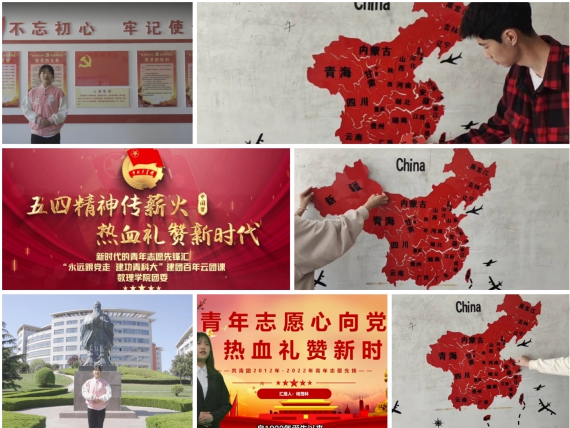 团委策划开展“高举青春火炬,共绘中华版图”团史红色地图视频展播活动,以青年团员骨干为宣讲主体,紧紧围绕团的百年奋斗历史,寻访革命先辈足迹,深入挖掘具有地域代表性的共青团红色故事,再现了共青团百年奋斗的光辉历程、伟大贡献、奋斗精神和宝贵经验。团史红色地图上的青运史,记录着每一个勇毅前行的足迹,饱含了奋斗的艰辛和革命岁月的激情澎湃,点燃青年团员践行初心接续奋斗、砥砺奋进青春报国的热情。以时间轴为顺序,选取2012-2022年间的共青团志愿服务大事记为主要内容,录制“永远跟党走,建功青科大”建团百年云团课,以青年学生喜闻乐见的形式讲好党领导青年运动的百年光辉历程,激励和引导广大青少年坚定不移听党话、跟党走。