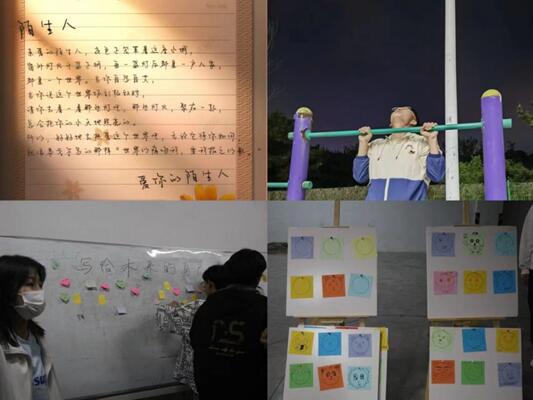 减轻“蕉绿”,心向未来:一张张写着烦恼与焦虑的便签飘入“焦虑盲盒”中被轻轻放下,同学们再从“鼓励盲盒”中汲取到继续前行的力量,并写下鼓励的便签将这份力量延续下去,最后那一张张满含对未来期待的便签也将穿越时空飞向十年后的自己。