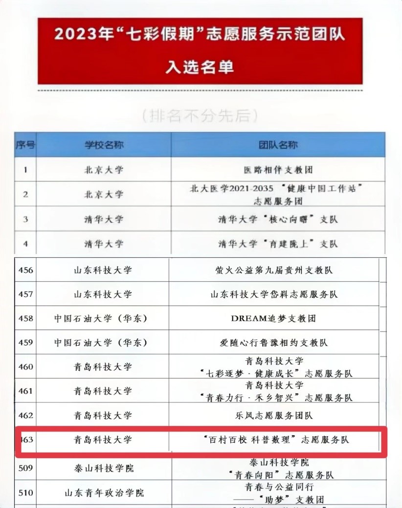 6月2日,团中央青年志愿者行动指导中心、中国青年志愿者协会秘书处公布了2023年“七彩假期”志愿服务示范团队入选名单,金财娱乐城app下载