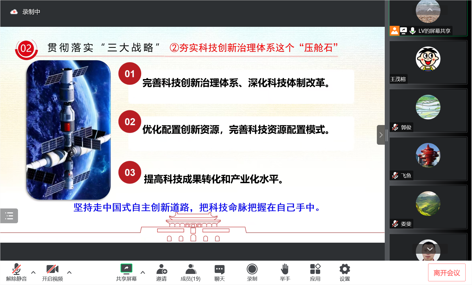 吕浩从“战略解读”和“贯彻落实”两大方面向党员同志宣讲分享。他指出“科教兴国、人才强国、创新驱动发展”三大战略是历史传承、时代要求和未来关键,要深刻理解、用心体会。贯彻落实三大战略任务,要牢牢握稳优先发展教育事业的“方向盘”、深深夯实科技创新治理体系这个“压舱石”、细细答好培育拔尖创新型人才这个“大考卷”。作为教师,要牢记教育初心,不忘为党育人、为国育才使命。始终心怀“为谁培养人、培养什么人、怎样培养人”这一教育的根本问题,努力做教育改革的奋进者、教育扶贫的先行者、学生成长的引导者。