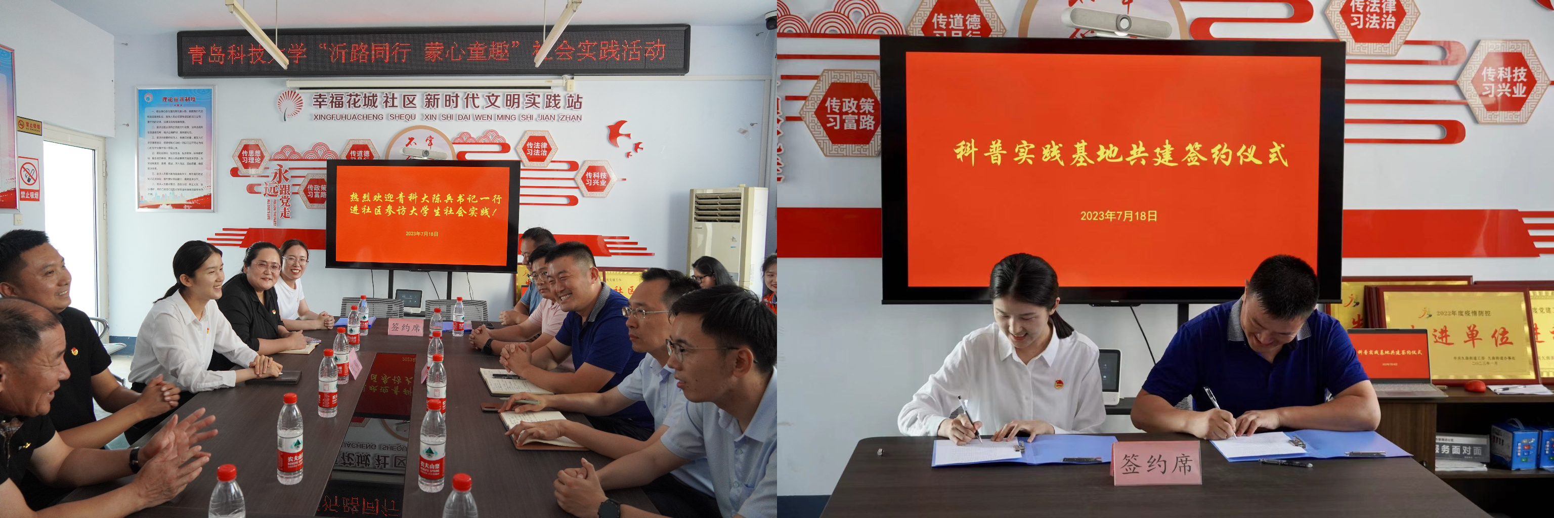 校地双方就当前实践活动的基本现状、社区实际工作需求等进行了座谈交流,对未来双方合作共建、促进大学生进社区等工作交换了意见。陈兵与张橦共同签署《科普实践基地共建协议》。