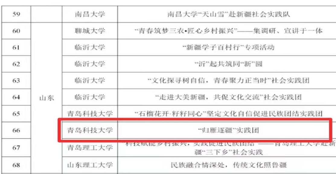 “归雁逐疆实践团”成功入选。