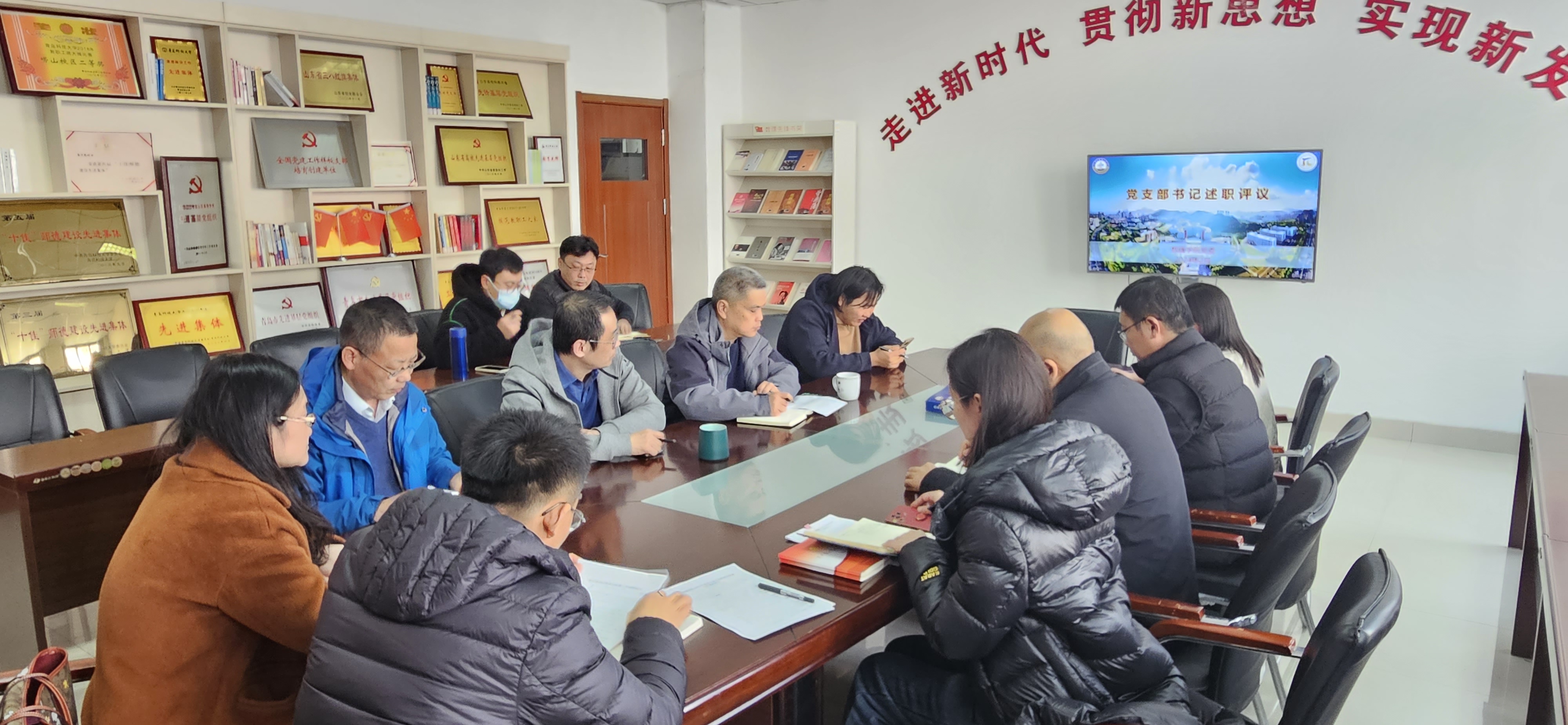 党委在学院210会议室举行党支部书记述职评议会,学院领导班子、党支部书记、系主任、分工会主席等参加会议。