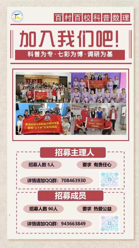 说了这么多,心动了吗?心动不如行动!“百村百校 科普数理”2024年暑期实践团正在招募中,期待你的加入,请感兴趣的小伙伴扫码入群吧!