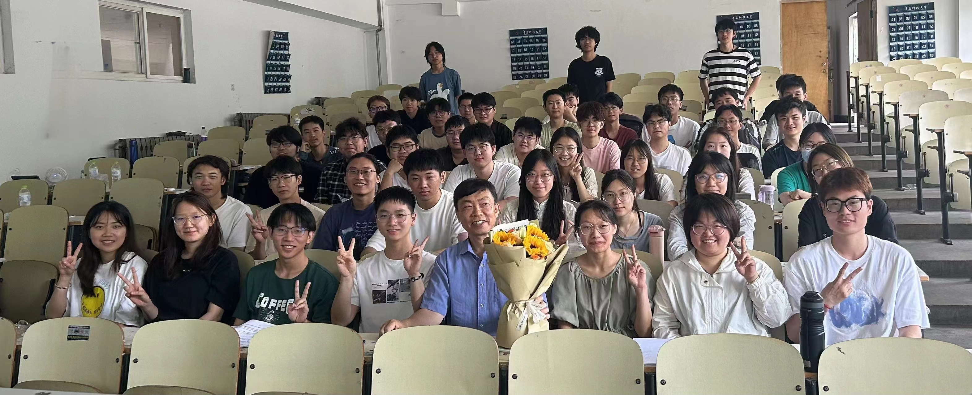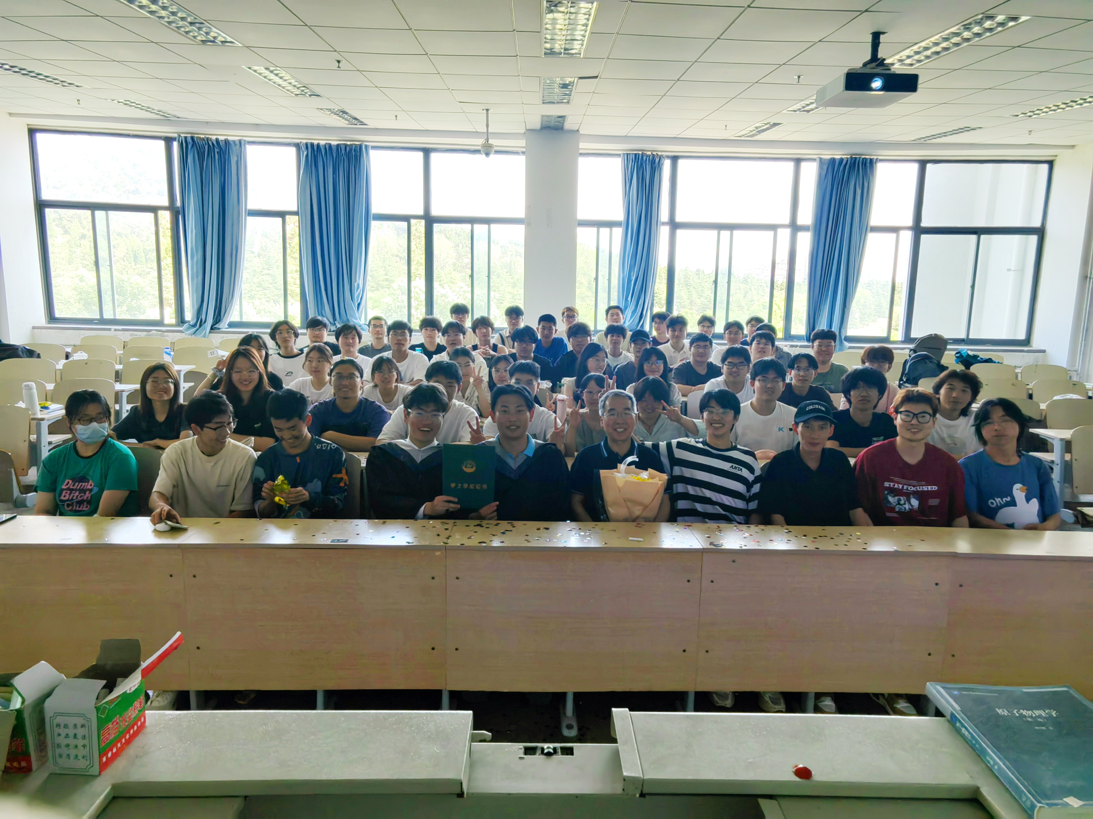 应用物理学专业的两名班长带着刚刚授完学位的同学们来聆听老师的最后一课。籍老师注意到了他们,微微一笑,讲课思路丝毫没有受到影响,但是底下坐着的同学们能听得出来,老师的语气里多了几丝欣慰和愉悦。