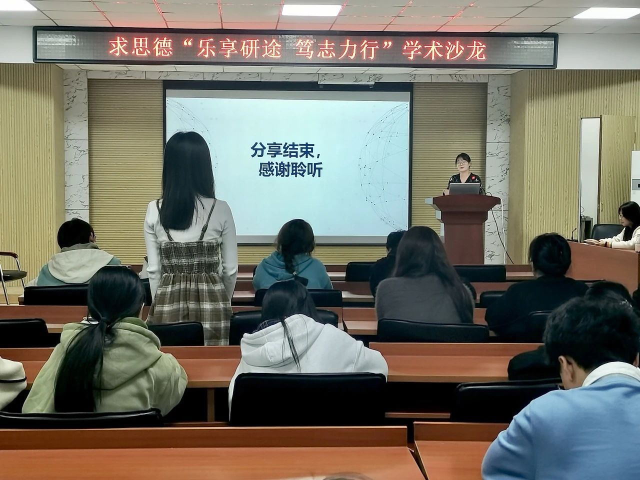 活动现场氛围热烈,大家纷纷向分享经验的两位学姐提出了自己在科研和生活中的困惑和迷茫。学姐们耐心地为大家解惑答疑,大家互相鼓励、共同进步。