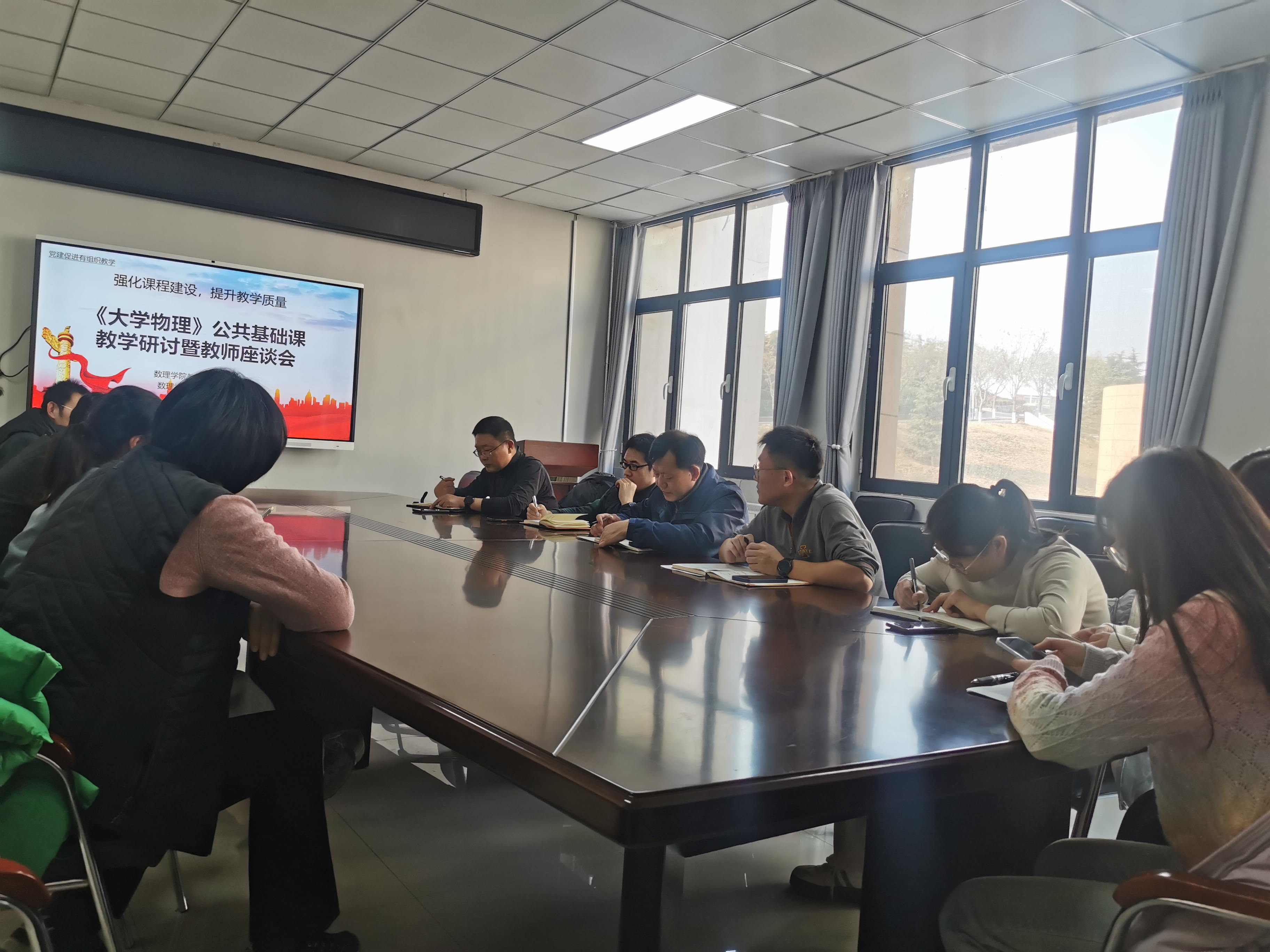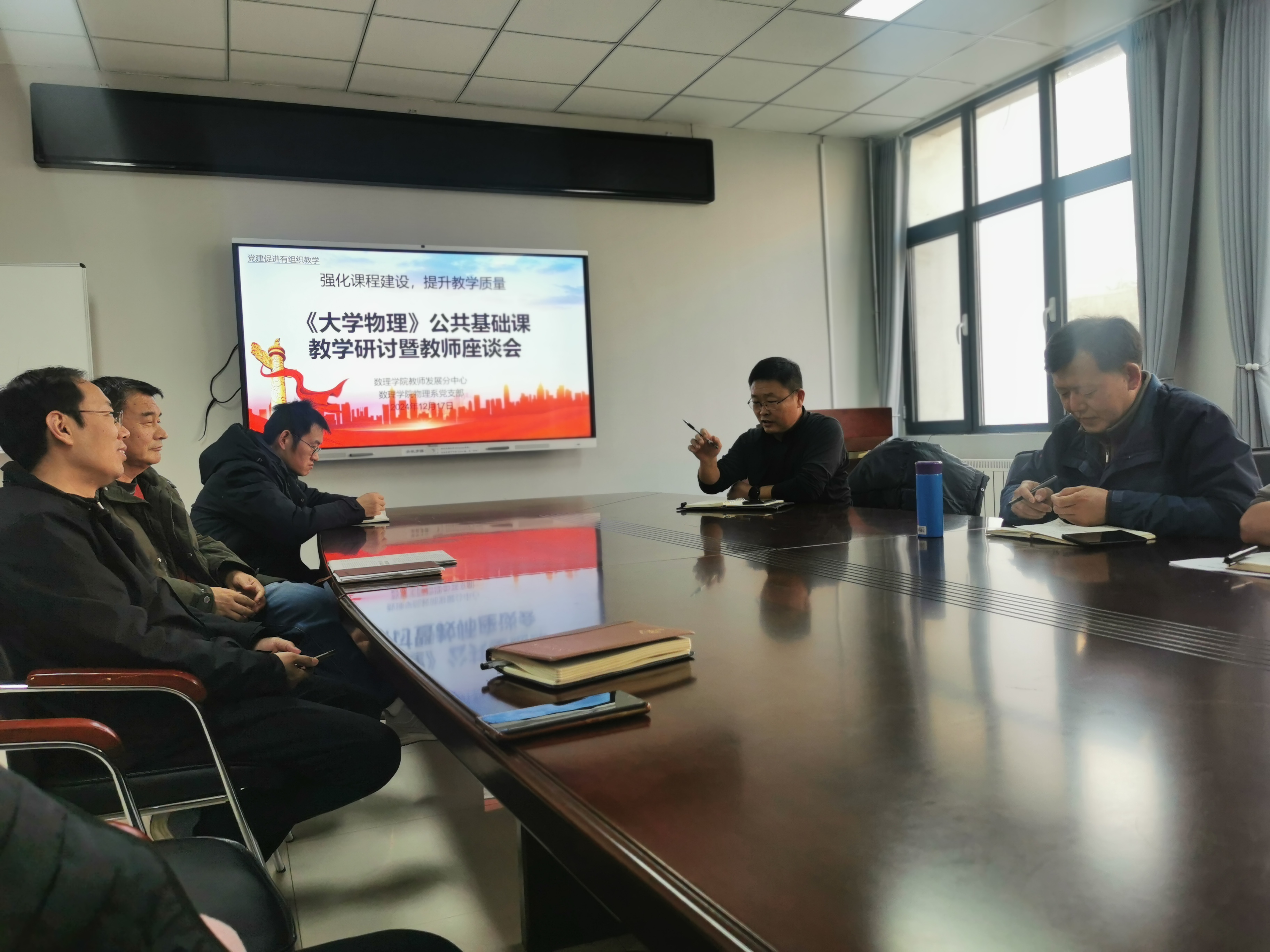 教师教学发展分中心组织开展《大学物理》公共基础课教学研讨暨教师座谈会,副院长郭广海和承担物理教学任务的老师参加会议,座谈会由吕浩主持。