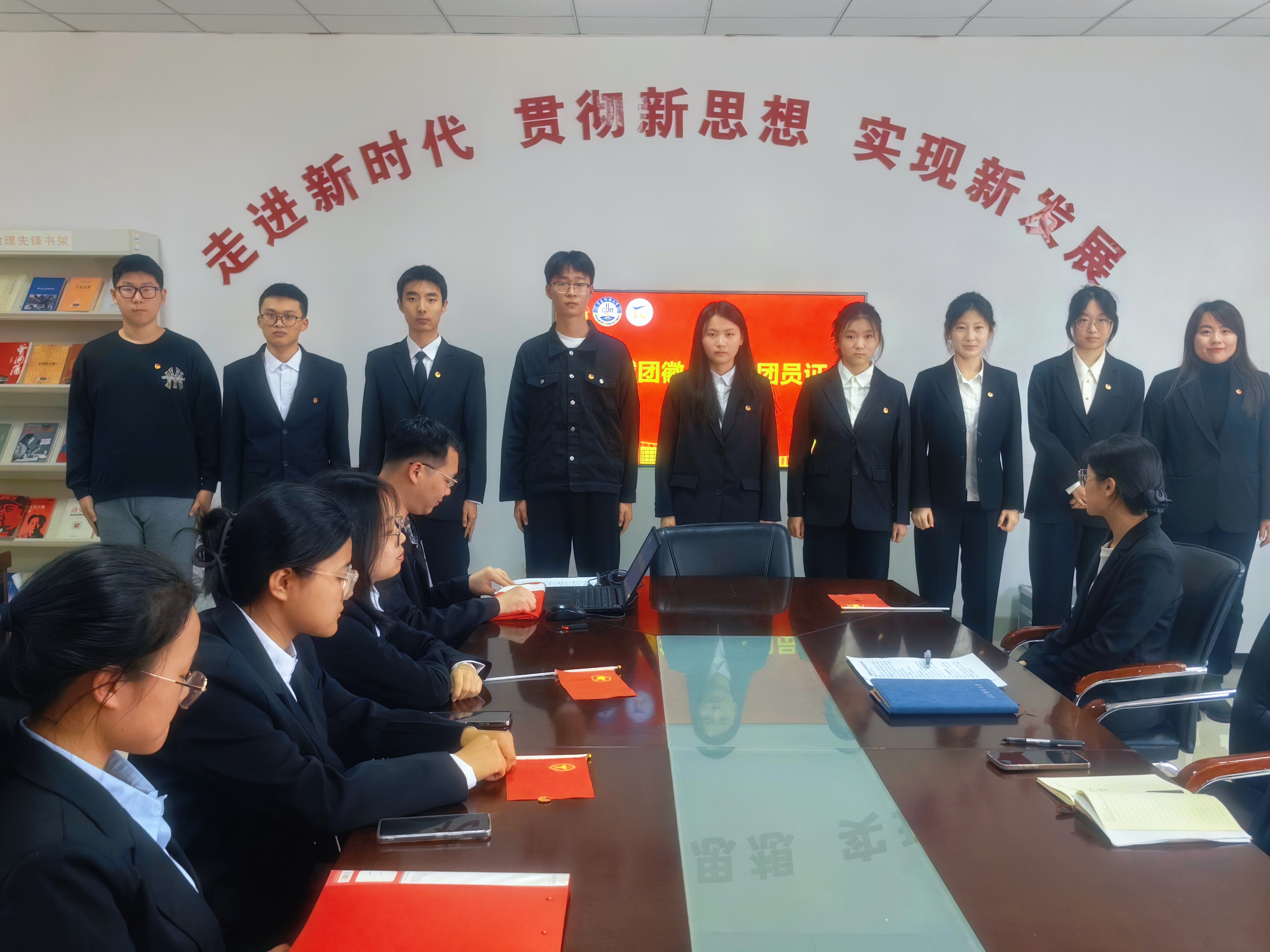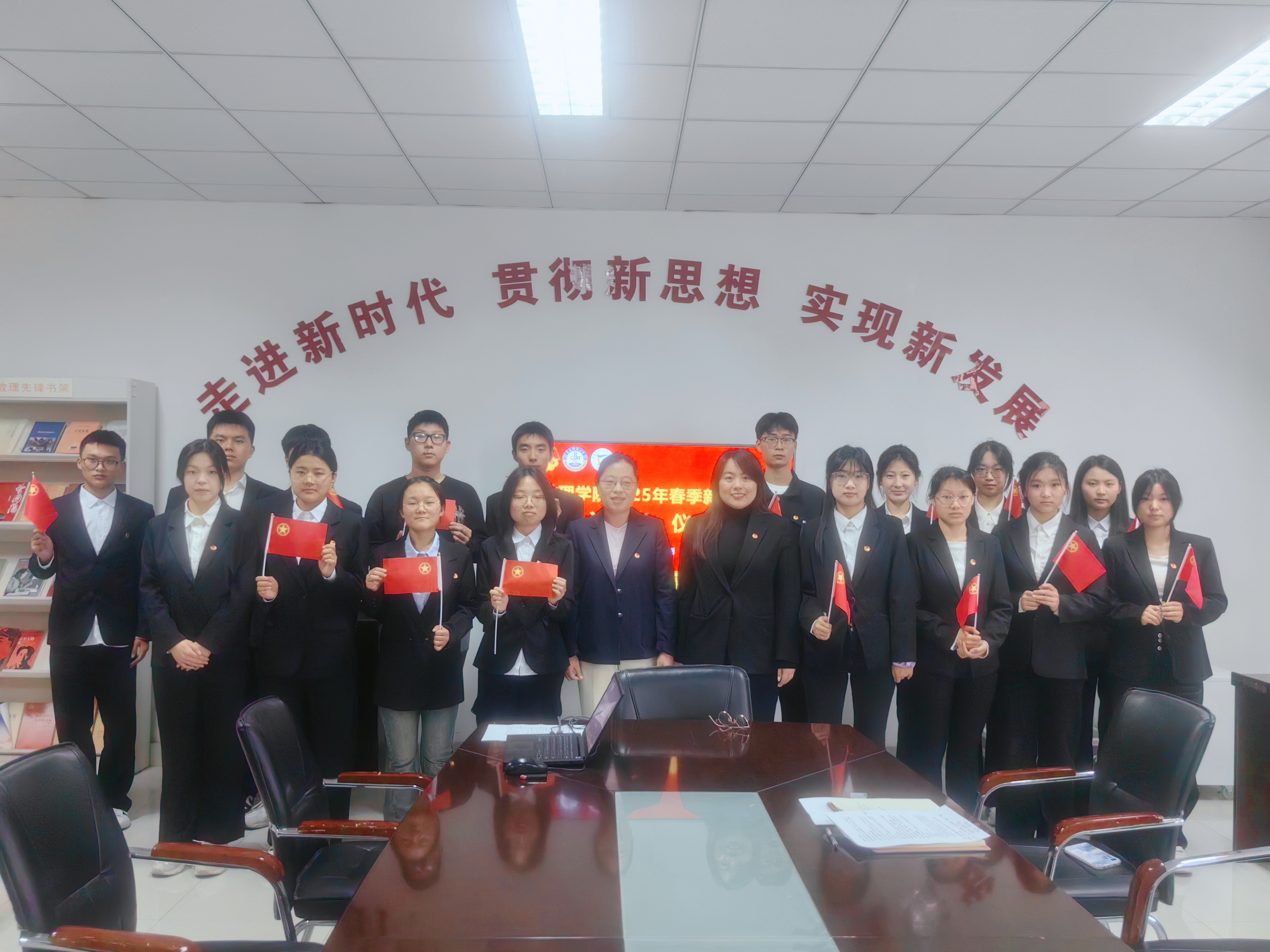 举办2025年春季新团员入团仪式暨入团教育主题团课,学院党委副书记李雯雯、团委副书记付凯、优秀团员代表、16名新发展团员参加活动。