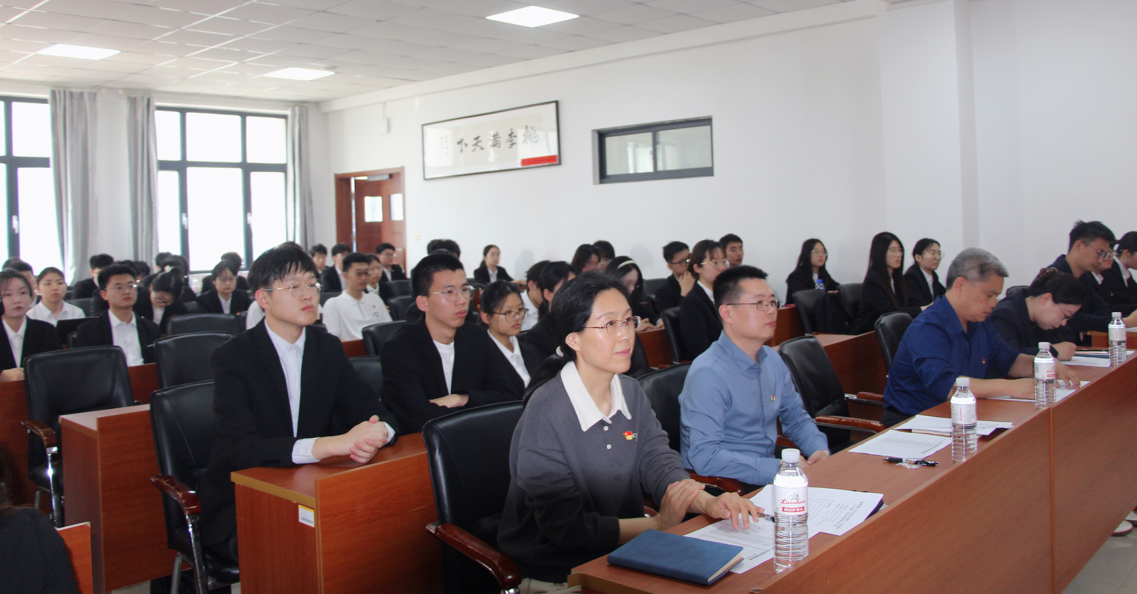 创新将中央八项规定精神量化为可考核的具体指标,面向学生群体建立“1+4+5”(1名党员+4名学生+5大帮扶维度)承诺践诺体系,让作风建设在育人实践中落地生根。28名党员与112名同学结对帮扶,52名入党积极分子签署承诺书,在思想引领、学业帮扶、志愿服务、科研创新等方面发挥示范作用。会后,学院党委书记刘保成做作风建设主题党课。