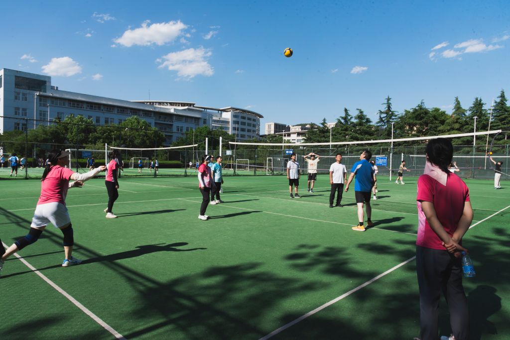 赛场上,三局两胜制的比赛紧张激烈,师生们你来我往,扣杀、拦网、救球等精彩瞬间不断上演,充分展现出高超的排球技艺与顽强的拼搏精神。比赛中师生间相互鼓励的呐喊、默契协作的瞬间,让这场比赛超越了竞技本身,成为师生情谊的生动注脚。