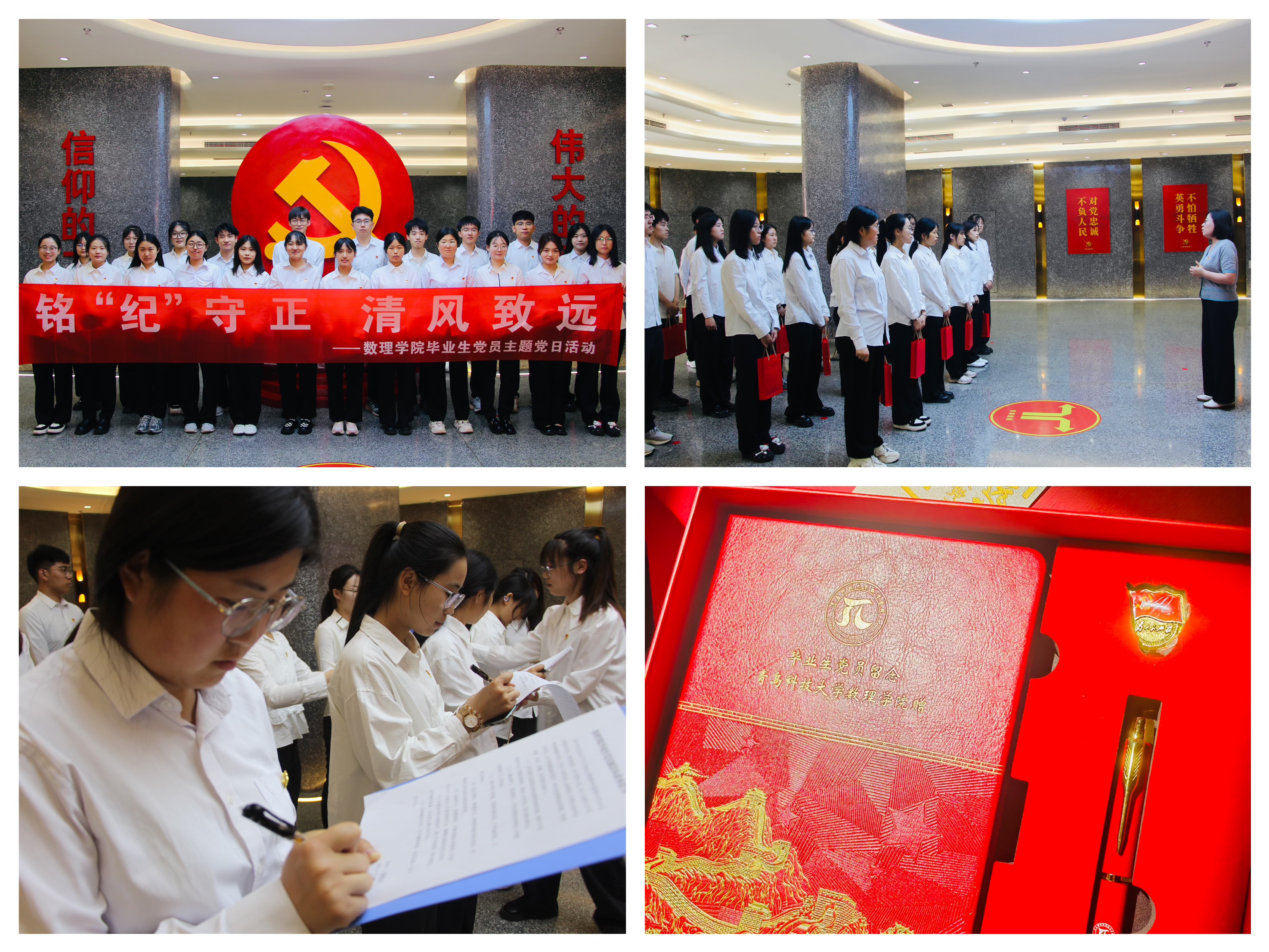 学院党委高度重视毕业生思想政治教育工作,特别将廉洁教育作为党员离校教育的重要内容。组织31名毕业生党员前往青岛市纪律馆,在讲解员的带领下,党员们认真学习了党的纪律建设历程,观看了廉政教育专题片。面向党旗,全体党员庄严重温入党誓词,并签署《毕业生党员廉洁从业承诺书》。同时,学院为毕业生党员用心准备“红色信仰礼包”,这份特殊的毕业礼物既饱含组织的殷切期望,也为毕业生党员指明了前进方向,勉励党员在今后的工作和生活中永葆初心、廉洁自律。
