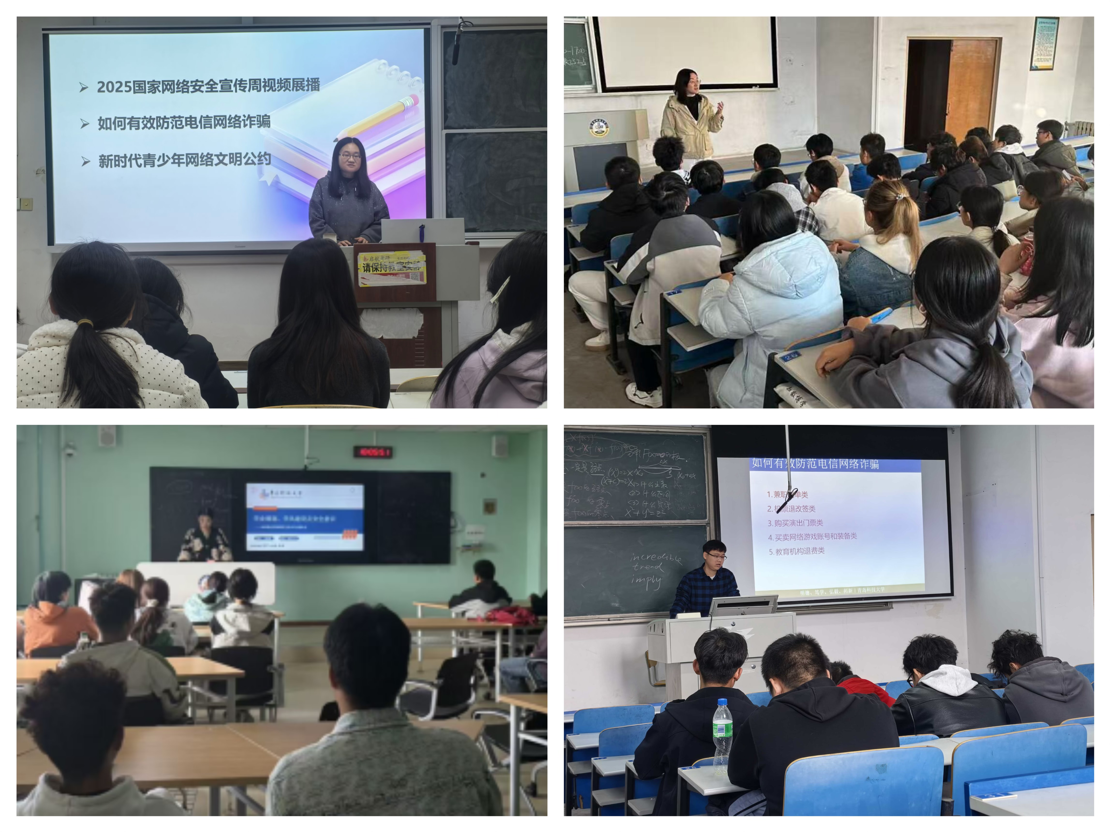 班会内容更加关注新生的实际需求,构建了“价值引领-学业导航-成长守护”教育主线。在思政教育方面,班主任们深入阐释科学家精神内涵,引导新生树立科技报国志向,将个人理想融入国家发展大局;在学风建设方面,发挥朋辈引领作用,邀请高年级学生做学习经验分享交流,帮助新生细致制定学业规划;在安全教育环节,班主任们不再局限于单向讲解,而是通过情景模拟、案例研讨等生动形式,让同学们在参与中掌握防范技能;在心理健康方面,各班组织了破冰游戏、团体辅导等活动,帮助新生尽快融入集体生活。“我们希望新生不仅能学到知识,更能感受到学院的温暖。”统计252班班主任徐菲老师表示。