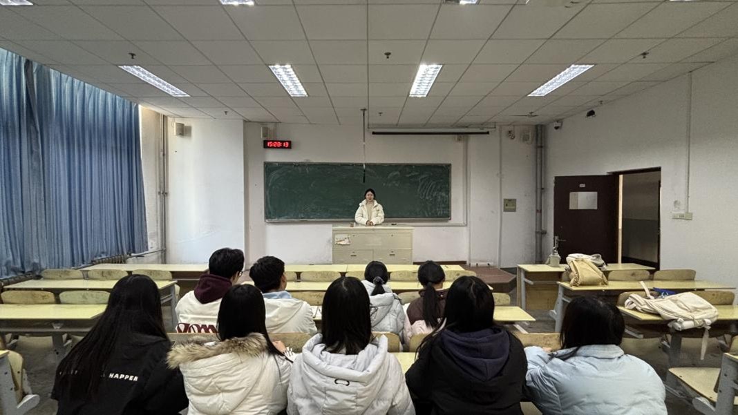 学习活动在弘毅楼E201教室开展,领学同学周思彤率先以“从著作中读懂青春担当”为主题领学。她梳理《青年要自觉践行社会主义核心价值观》等重点篇目脉络,结合国家发展中的青年案例解读“以人民为中心”的思想内涵,并穿插《习近平的七年知青岁月》中领袖扎根梁家河的故事,让理论更鲜活。同学们紧跟节奏标注重点、实时提问,领学同学逐一解答,教室中互动学习氛围浓厚。