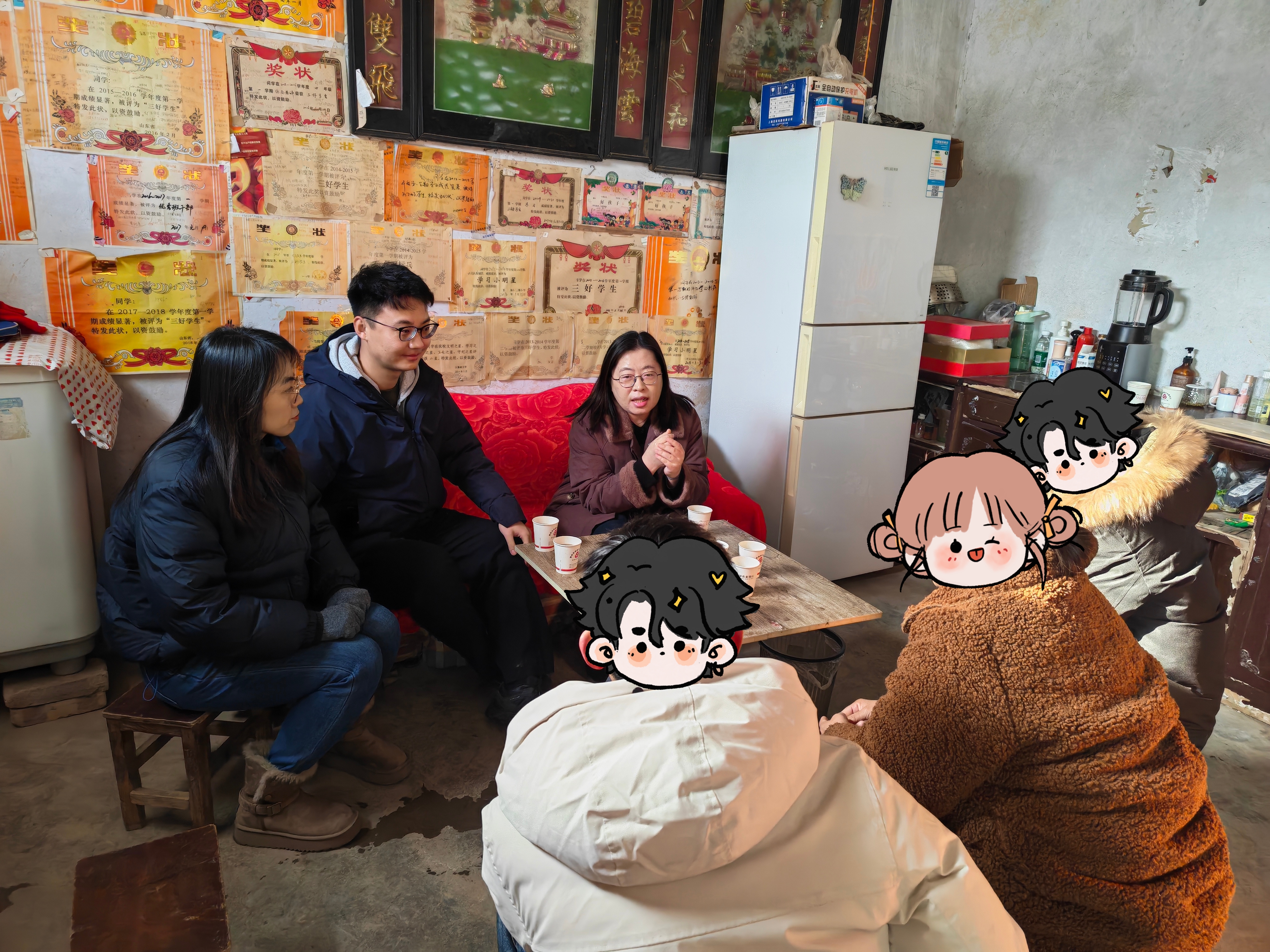 本次走访采取“线下走访省库重点+线上覆盖特殊类型”相结合的方式。在1月22日的线下走访中,走访小组深入菏泽市牡丹区、曹县等地区的学生家庭,与学生及家长深入交流。针对应数专业2025级一名脱贫享受政策家庭学生,走访小组详细了解了其家庭经济现状与学业适应情况,并结合其已获国家助学金的情况,进一步介绍了学校勤工助学、学业发展支持等长效帮扶机制。针对应物专业2024级一名家庭经济特殊困难叠加学业适应困难的学生,走访小组在交流中注重心理疏导,与家长共同探讨学业帮扶计划,鼓励学生积极用好“朋π三堂课”“易知π”等朋辈辅导资源。线上家访同步展开,针对学业预警、就业焦虑、心理困扰等不同类型学生,进行一对一沟通与政策宣讲,所有问题均被记录并纳入帮扶台账。