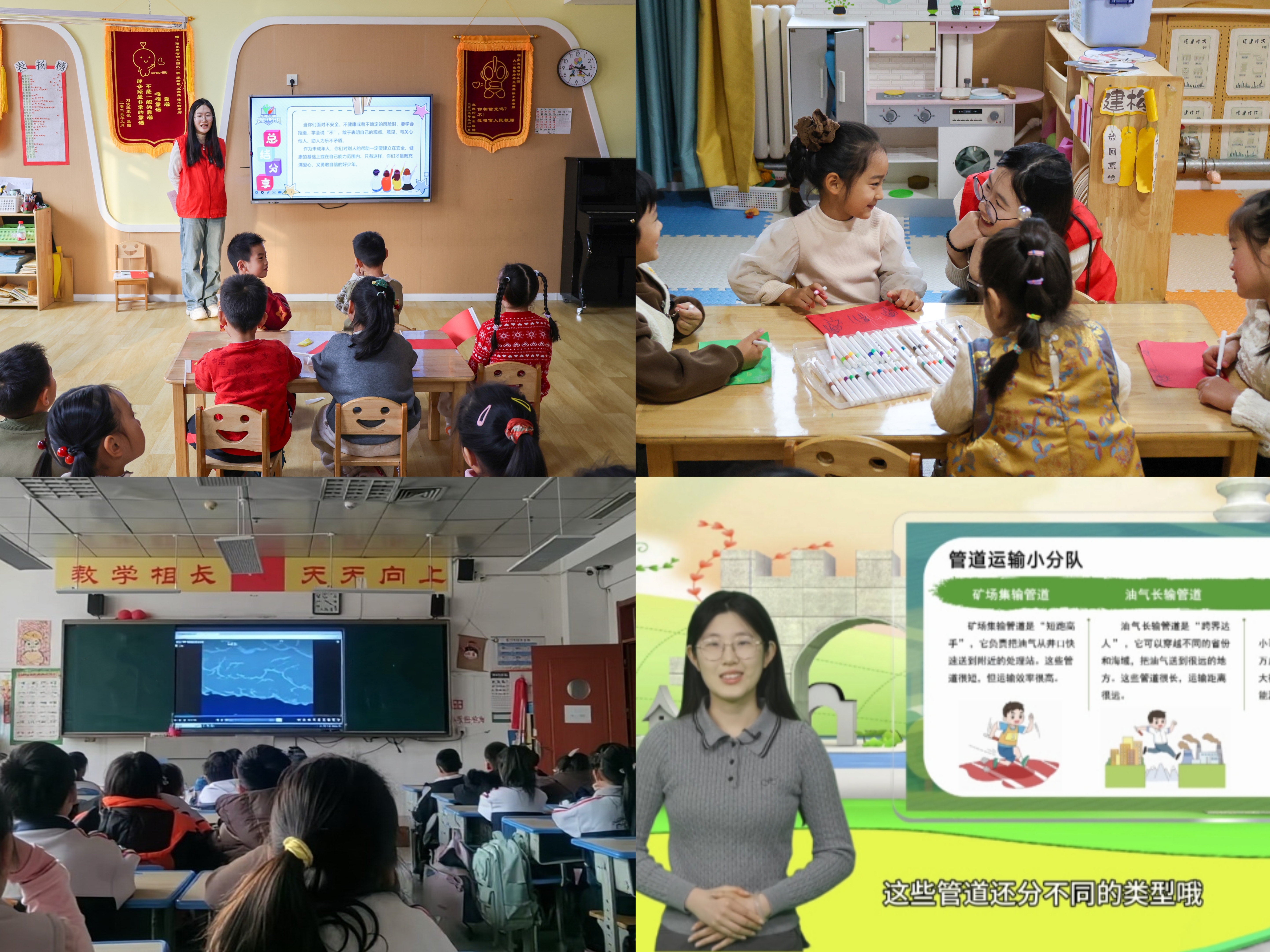 活动中,服务队发挥应用统计学专业优势,将深奥管道知识转化为生动表达:面向幼儿园小朋友,以“能源小火车轨道”等趣味游戏启智;针对初中生,则借科普电影与研讨深化认知、点燃责任担当。线上同步推出4期精品微课及图文,融合动画、实景讲解,通过官微、视频号推送,累计阅读量破2000次,单期最高播放超500次,广覆知识盲区。