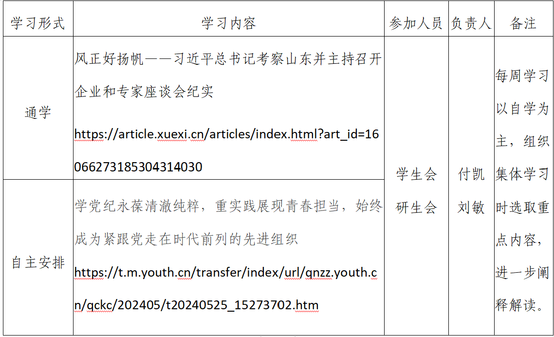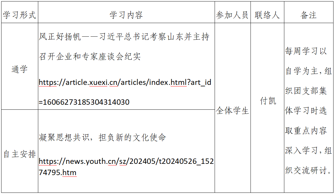 2024年春季学期第13周金财娱乐城 团支部学习安排