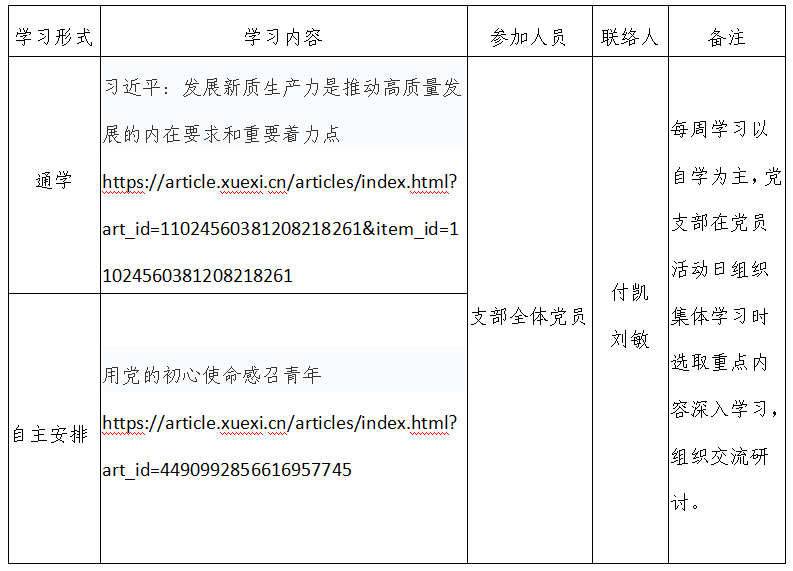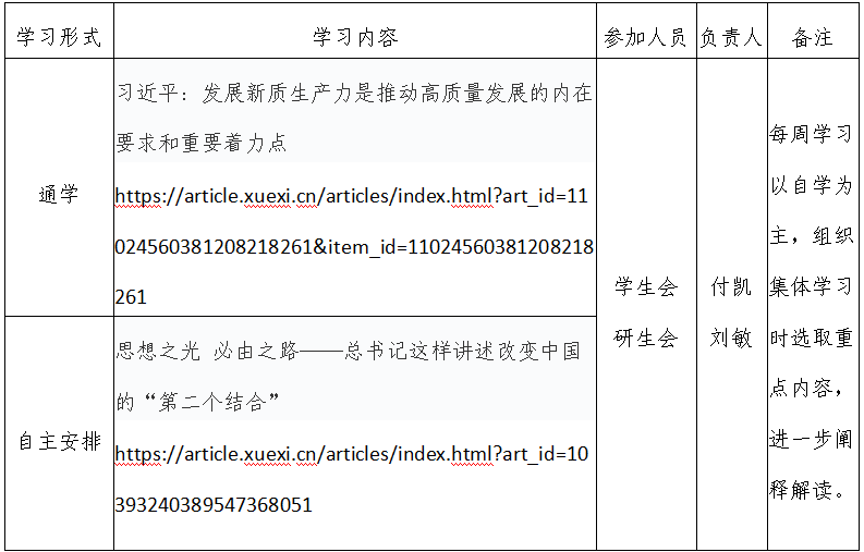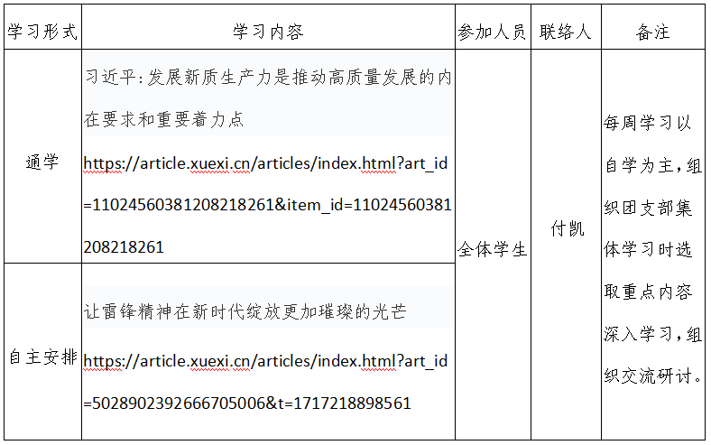 2024年春季学期第14周金财娱乐城 团支部学习安排