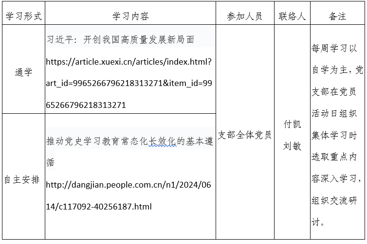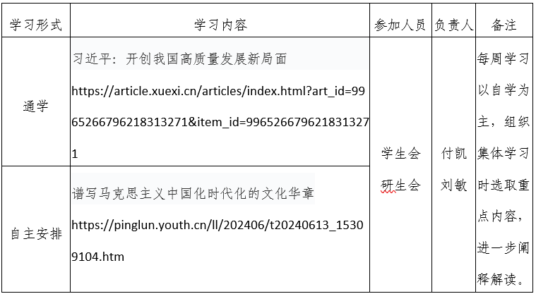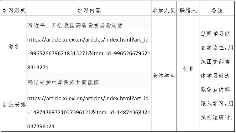 2024年春季学期第16周金财娱乐城 团支部学习安排