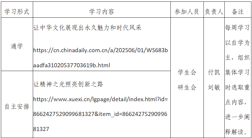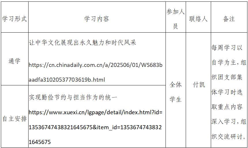2025年春季学期第14周金财娱乐城 团支部学习安排