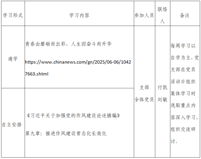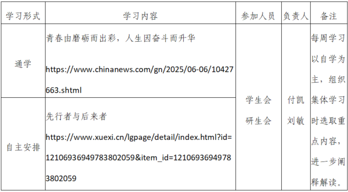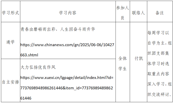 2025年春季学期第15周金财娱乐城 团支部学习安排