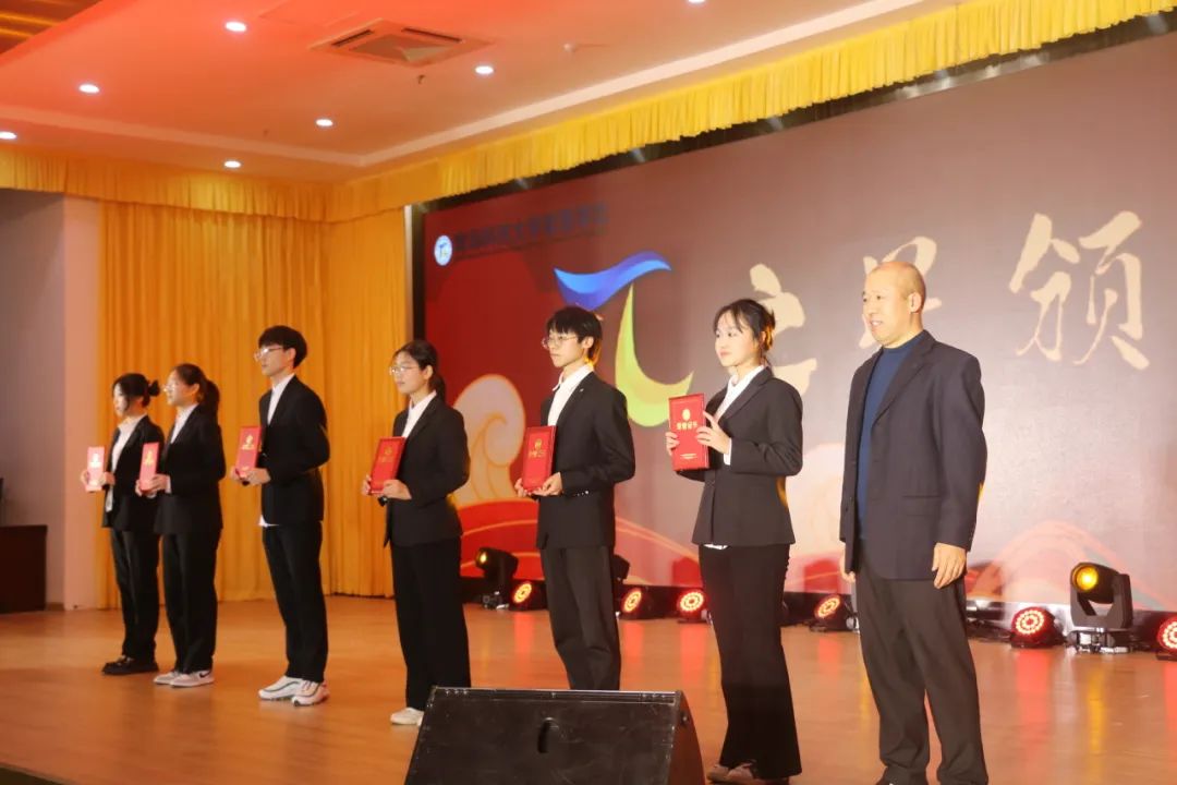 在数理文化节优秀学生成果表彰环节,李淑贞、杨树国分别为12位获得“π之星”荣誉称号的优秀学生颁奖;郭广海为获得国家奖学金、山东省优秀学生等省级以上荣誉的优秀学生颁奖;张瑞坤、高鹏分别为全国大学生数学建模、山东省物理竞赛等学科竞赛获奖学生颁奖。