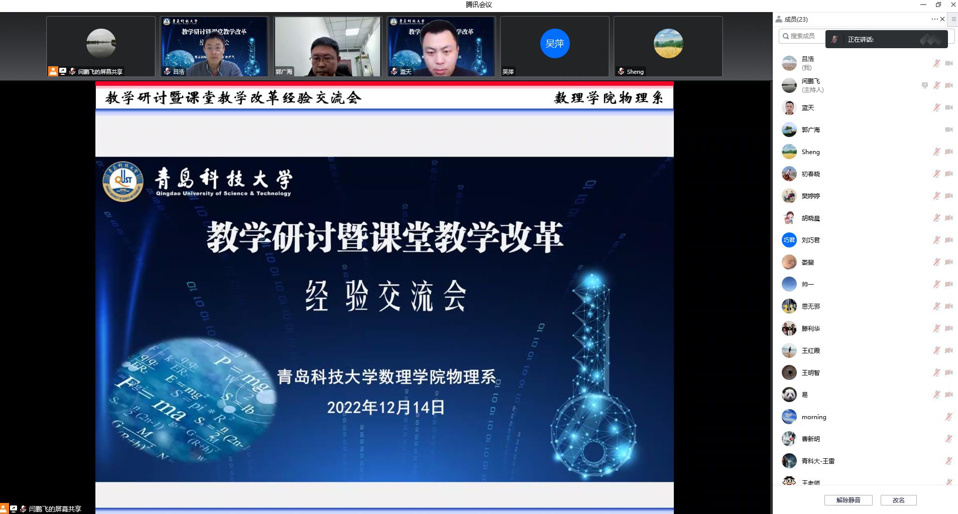 副院长郭广海、教务处教研科科长曹新明、物理系全体教师及来自高密、黄岛校区物理教师参加,物理系副主任闫鹏飞主持研讨交流会。