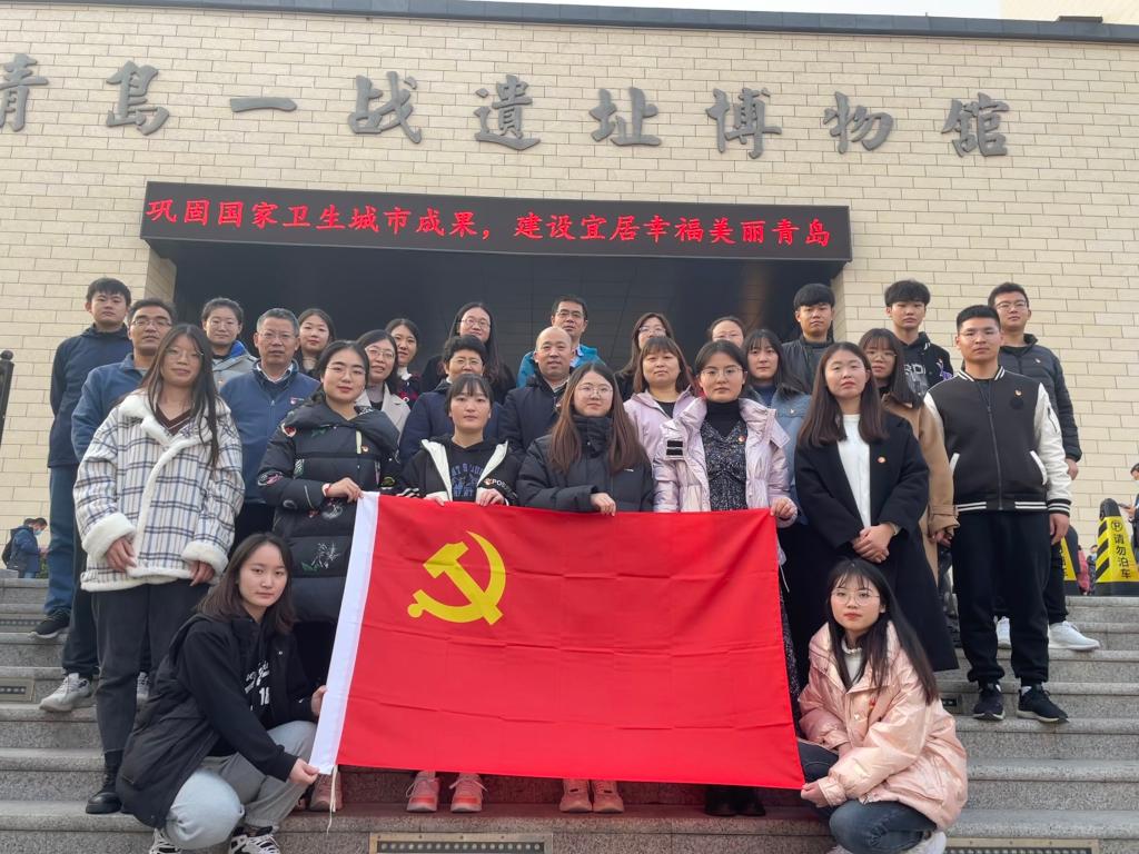全体党员首先观看了专题教育影片《烽火青岛》。随后,在讲解员的带领下参观了一战遗址博物馆。作为目前唯一全面展现一战对中国命运影响的国家一级博物馆,馆内展览以“誓死力争,还我青岛”为主题,分为“德占青岛”、“日德战争”与“苦难归程”三个展馆。300余幅照片及上千件珍贵文物再现了家国故园至主权回归的艰难历程。站在“五四运动”的银幕复原场景中,师生们便不自觉地举起拳头,发出“还我青岛”的声声呐喊。