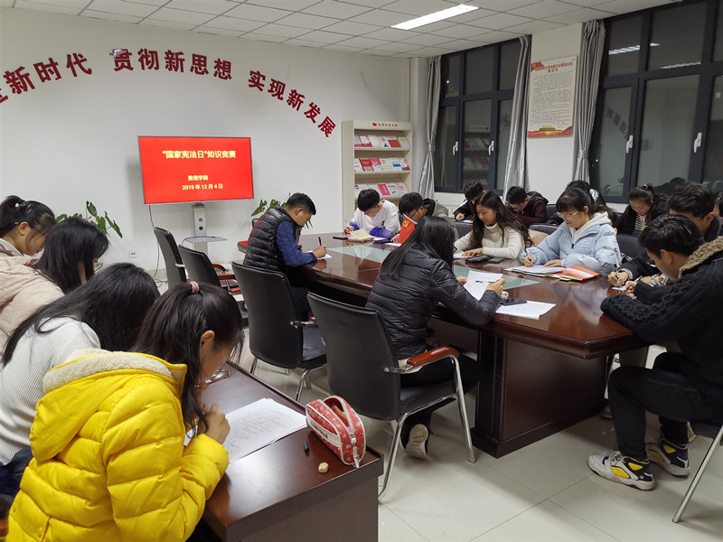 举办国家宪法日知识竞赛,学院主要学生干部30余人参加活动。