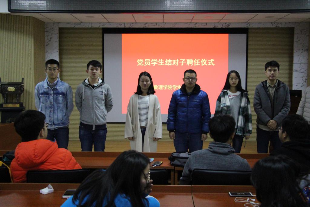 会议首先进行党员和普通学生结对子活动。党员与大一新生两两配对,互换联系方式并上前合影留念。这次会议充分发挥了党员的先锋模范作用,激发了大一学生的学习积极性,是联结不同年级学生间的纽带,使金财娱乐城app下载 的人才培养更具立体化。