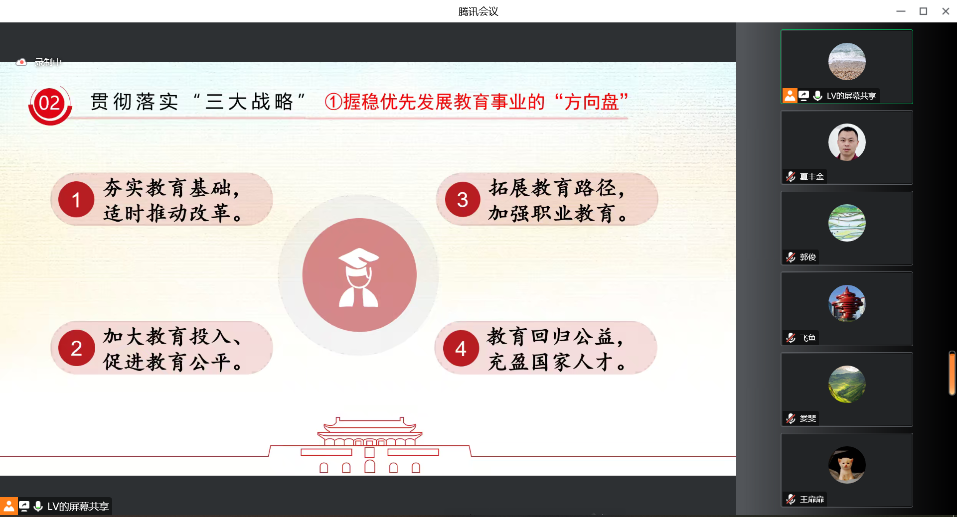 吕浩从“战略解读”和“贯彻落实”两大方面向党员同志宣讲分享。他指出“科教兴国、人才强国、创新驱动发展”三大战略是历史传承、时代要求和未来关键,要深刻理解、用心体会。贯彻落实三大战略任务,要牢牢握稳优先发展教育事业的“方向盘”、深深夯实科技创新治理体系这个“压舱石”、细细答好培育拔尖创新型人才这个“大考卷”。作为教师,要牢记教育初心,不忘为党育人、为国育才使命。始终心怀“为谁培养人、培养什么人、怎样培养人”这一教育的根本问题,努力做教育改革的奋进者、教育扶贫的先行者、学生成长的引导者。