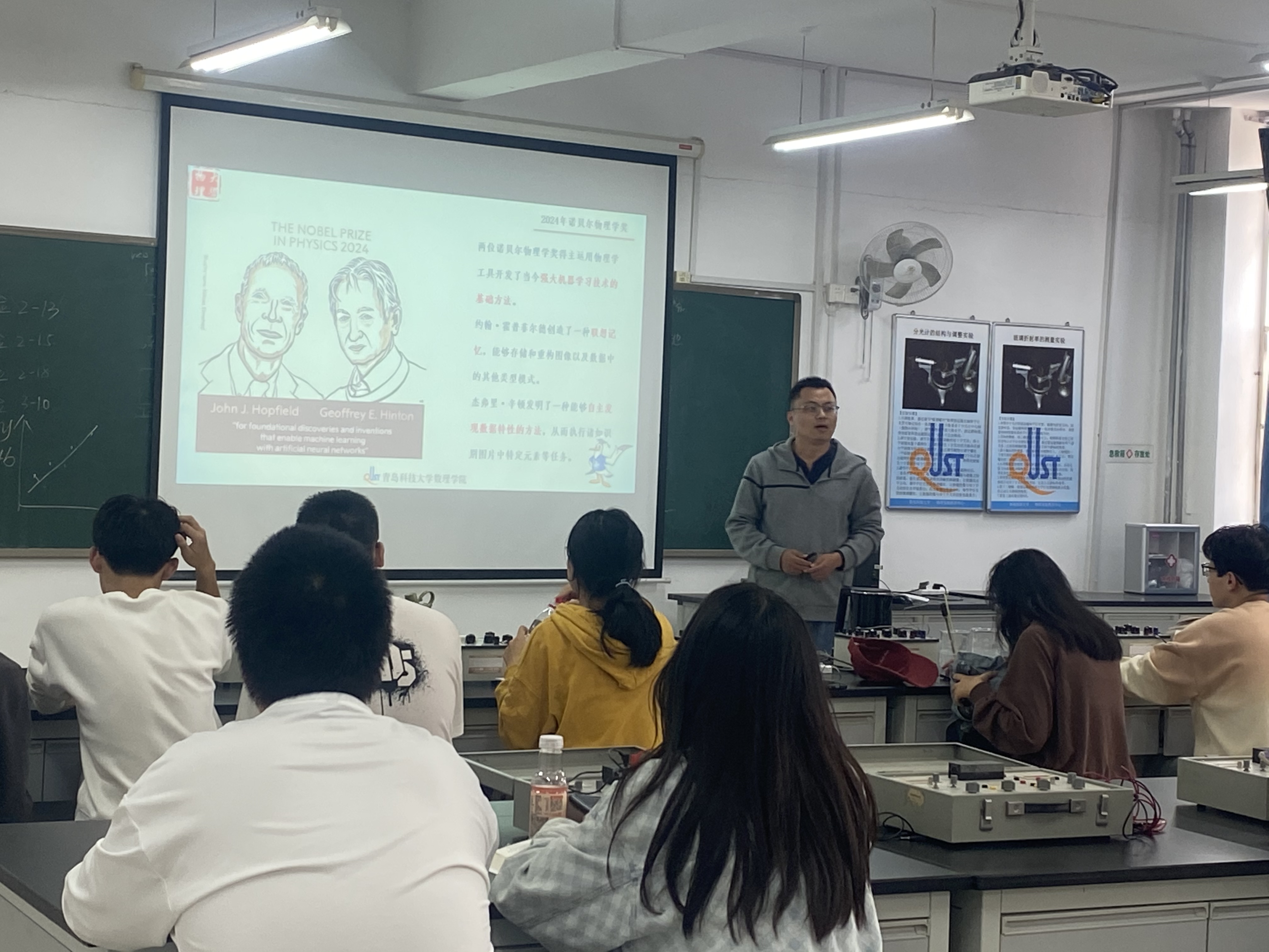 物理系党支部利用物理基础课、专业课和实验课堂开展了“课堂三分钟”活动,与学生分享了2024年诺贝尔物理学奖内容。今年的诺贝尔物理学奖授予了美国科学家约翰·霍普菲尔德 (John Hopfield)和英国科学家杰弗里·辛顿(Geoffrey Hinton),以表彰他们在人工神经网络和机器学习方面的基础性贡献。