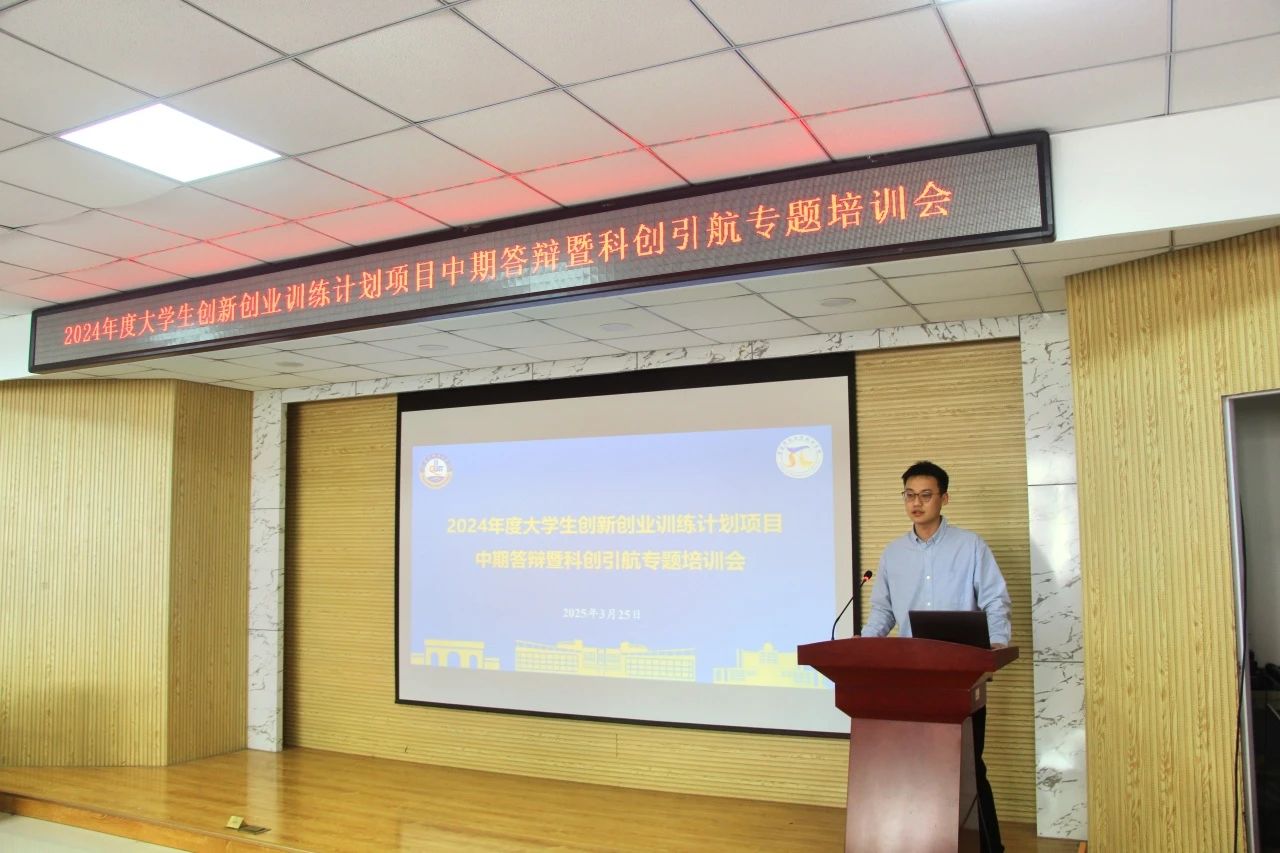 于3月25日成功举办2024年度大学生创新创业训练计划项目中期答辩暨科创引航专题培训会。本次活动由学院双创工作负责人丁璇思主持,特邀高鹏、张瑞坤、朱善良三位专家组成评审团,对13支国家级、省级及校级立项团队进行阶段性核验与专业指导。