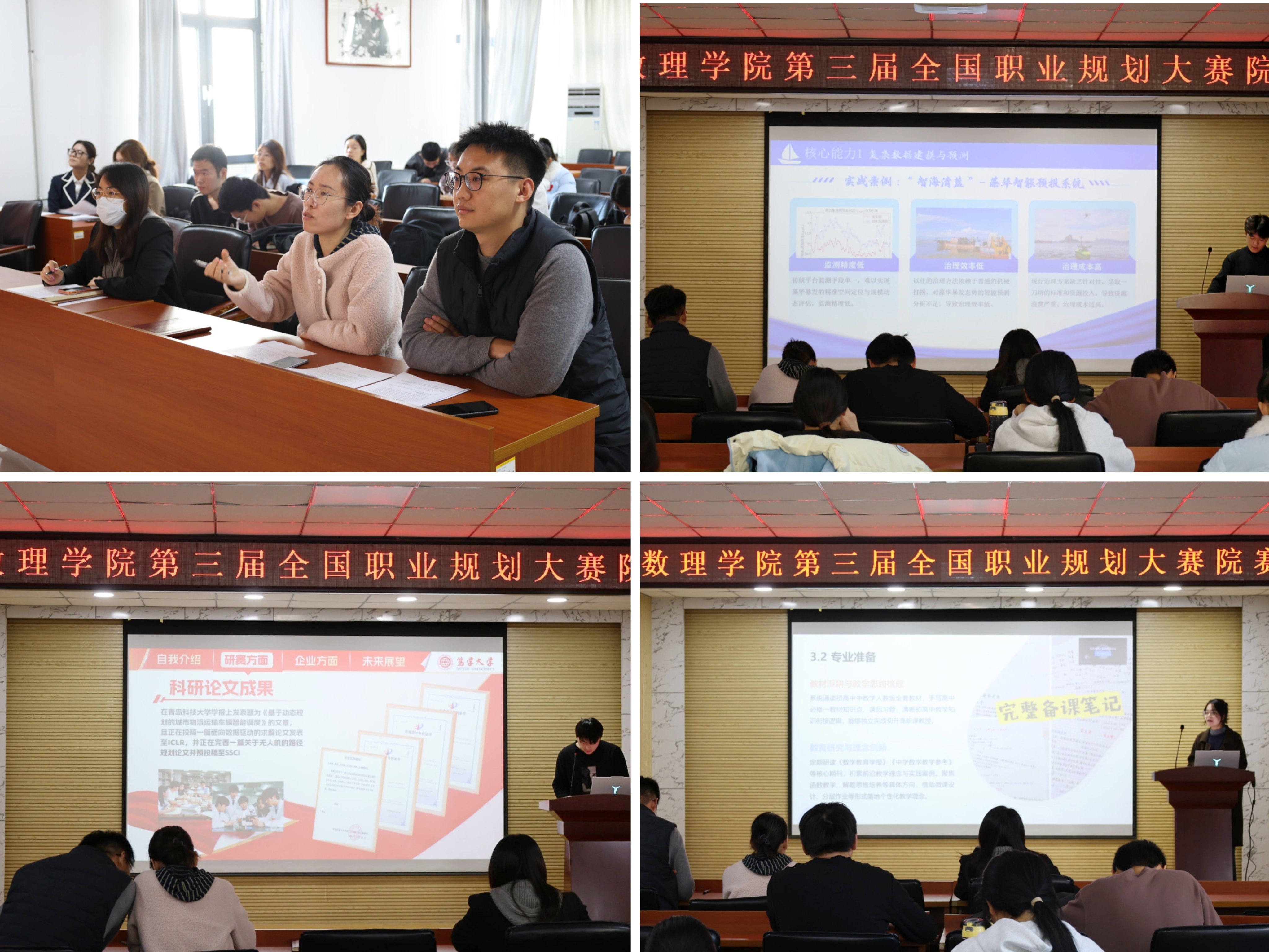 举办第三届大学生职业规划院级选拔赛。本次大赛以“筑梦青春志在四方,规划启航职引未来”的核心主题,设置成长赛道与就业赛道双赛道。学院团委书记付凯、辅导员刘敏、丁璇思担任评委。