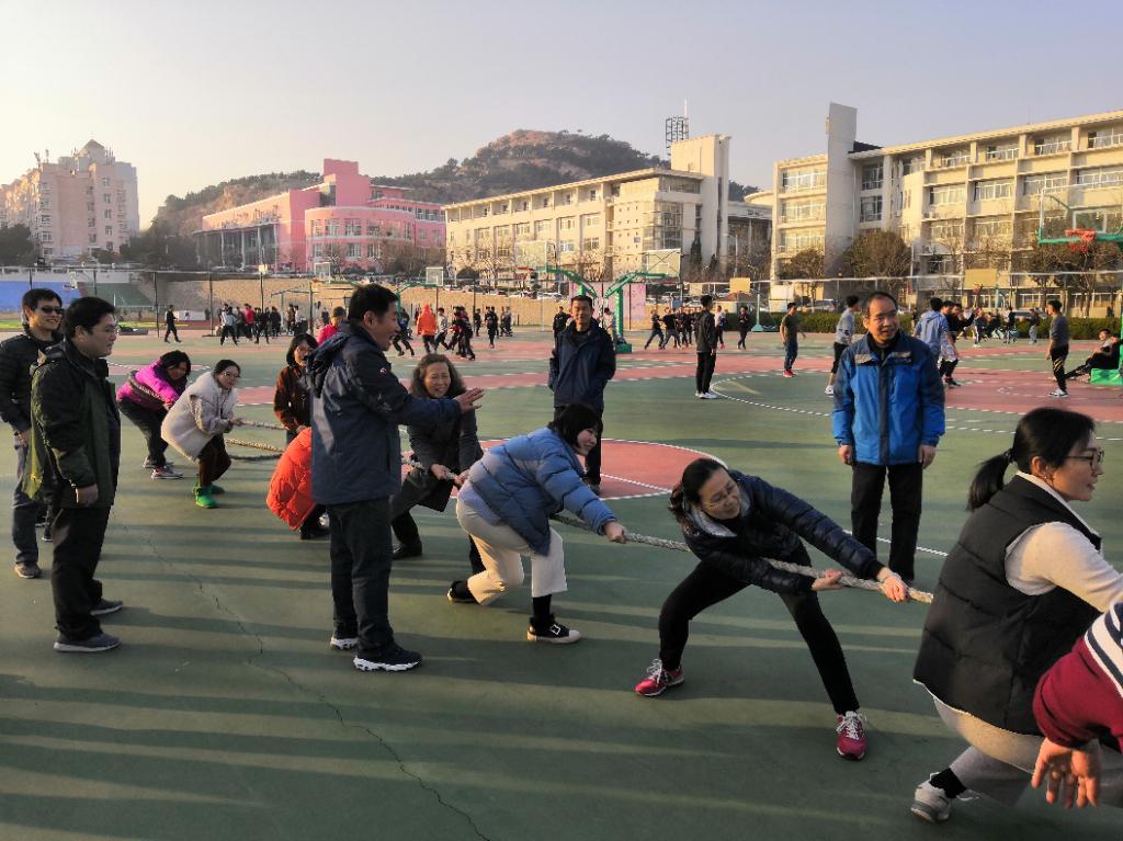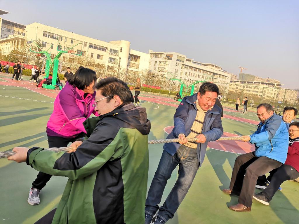 比赛的第一个项目是拔河,比赛分男女教职工分别进行。在比赛正式开始之前,老师们先是简单的热身,彼此之间交流一下最近的身体状况。热身后,在裁判员的一声令下,比赛开始,大绳两边选手双手紧攥,用力往后拉。受人数限制没有上场老师们更是激情澎湃,身体恨不能随绳而动,努力胡喊齐号子。尤其是女老师们也都抛却了平时的优雅和矜持,真是用尽了最大的力气。