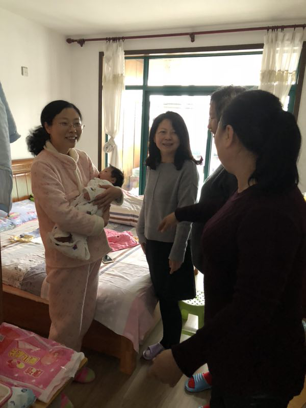 院长杨树国,党总支书记李淑贞,分工会主席丁霞和分工会其他委员探望和慰问了生病、生育的两位职工。