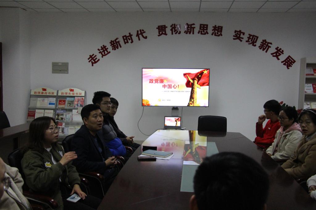 2018年11月6日下午四点,金财娱乐城 党总支学生党支部书记葛夫国及各位学院党员在党建活动室召开了“政党廉,中国心”主题党支部大会。