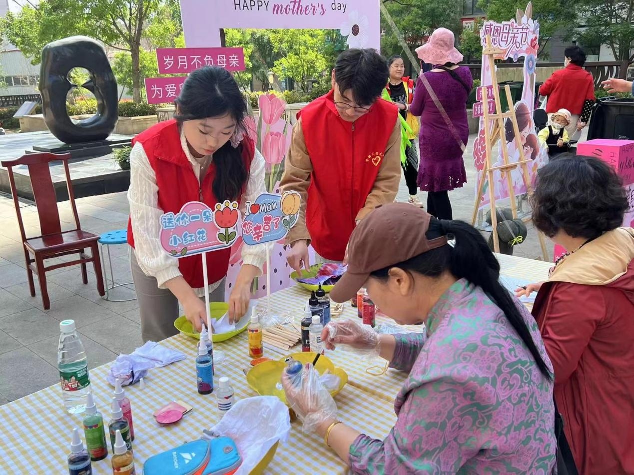 青年学子走进崂山区新宏路社区,联合青岛汇泉社会工作服务中心开展母亲节游园志愿服务活动。