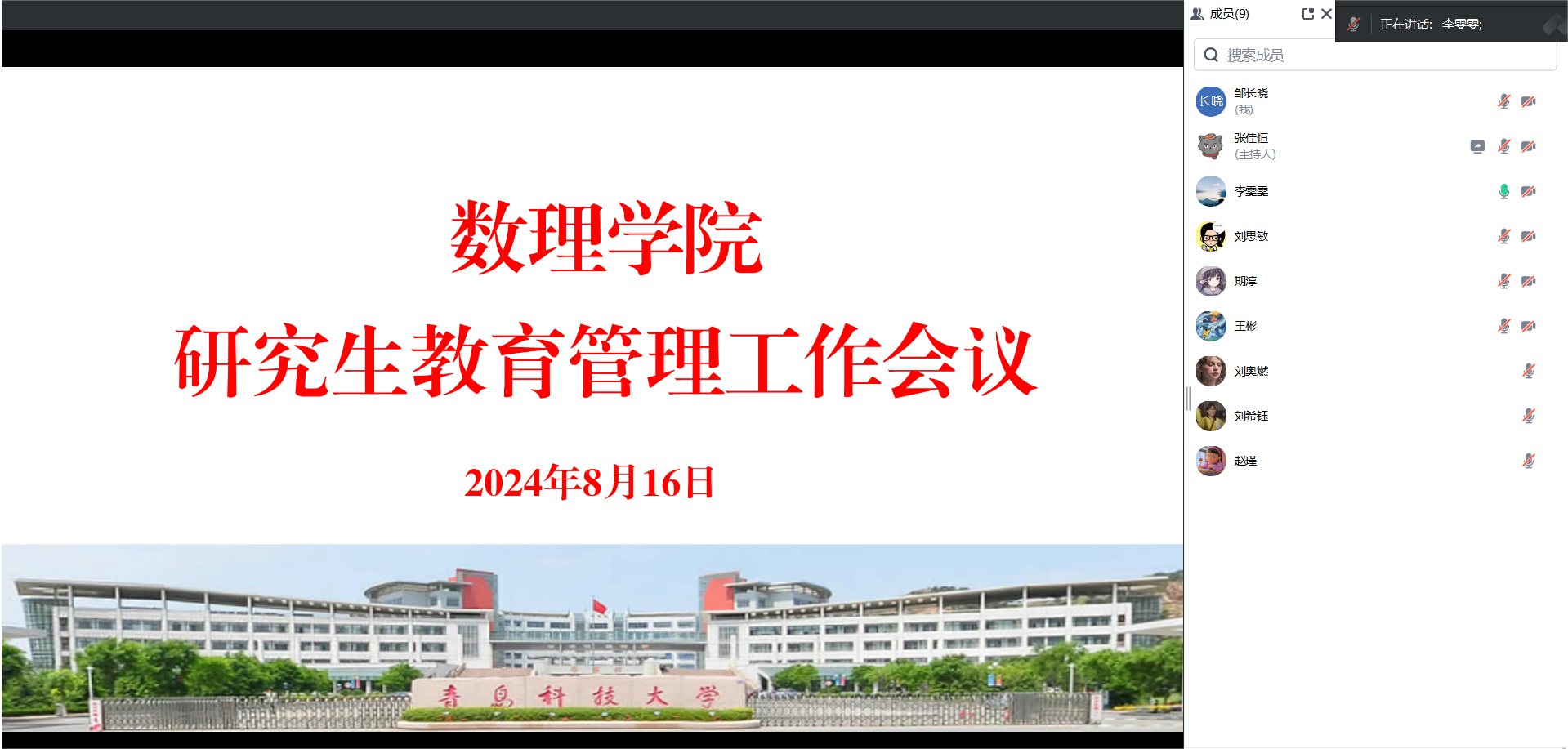 为推进研究生教育管理工作有序开展,8月16日下午,金财娱乐城 组织开展专题会议,部署推进暑期相关工作。学院党委副书记兼副院长李雯雯,研究生各班班长及团支书参加会议。